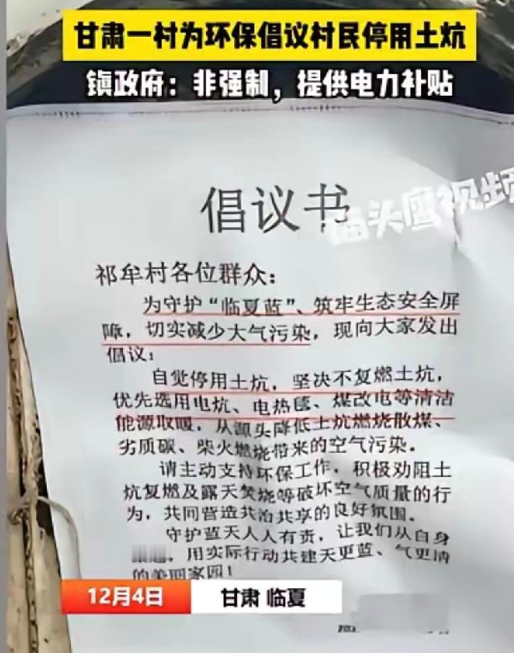 甘肃临夏,村民们得到通知,不给使用土炕取暖,要改为电暖,电褥子,电热毯取暖,村民们都愁了,老一辈的人,使用了一辈子的土炕,现在居然不给使用了,这个冬天太难熬了,对此,相关的人表示,他们会提供用电补贴,这并非是强制的。 西北的冬天,风跟刀子似的刮过屋檐,甘肃临夏的村民们,往年这会儿早把土炕烧得暖烘烘的,一家人围坐着喝茶唠嗑,连墙角的寒气都能逼退。 可今年一张倡议书,让这份延续了几代人的暖意,变得有些悬。 村里说建议大家停用土炕,换成电炕、电热毯这些清洁能源取暖,消息一传开,村头巷尾就聚满了议论的村民,眉头都拧成了疙瘩。 土炕在村里人的生活里,早就不只是个取暖的物件。 老一辈人打记事起就睡在土炕上,冬天烧上一把干柴、一筐落叶,热量能透过炕面渗到全屋,暖得踏实又温润,一整夜都不会凉。 农闲时,邻里串门也是往炕上一坐,热茶一递,家长里短就聊开了,“上炕待客”是刻在村里的老规矩。 可如今说要停用,老人们心里空落落的,总觉得这个冬天少了点什么,夜里躺在床上,没了土炕的暖意包裹,翻来覆去都睡不踏实。 年轻村民虽然接受新鲜事物快些,可也忍不住吐槽。 电热毯倒是能暖被窝,可一插上电,屋里的空气就变得干巴巴的,早上起来喉咙发紧、鼻子发痒,很不舒服。 电暖器开着的时候还好,一关就立马凉下来,哪比得上土炕那种慢悠悠散出来的全屋热乎气。 更让他们犯愁的是电费,村里不少家庭收入不高,还有独居的老人,虽说政府说了有用电补贴,可补贴能补多少、能不能及时到位,大家心里都没底。 往年烧土炕,柴火都是上山砍的枯枝、地里收的秸秆,几乎不用花钱,现在换成电取暖,每个月的电费都是一笔固定支出,日子过得本就精打细算,这下又多了一笔负担。 村民们实在想不通,烧了几十年的土炕,怎么突然就不能用了。 他们烧的大多是干柴、落叶这些,就算偶尔烧点旧衣物,量也少得很,能产生多少污染呢? 有村民说,之前听人说过,研究都显示土炕的污染比想象中温和,甚至比不上香烟和汽车尾气的影响。 大家不是不支持环保,只是觉得好好的土炕,没必要一下子就不让用了,这种多年养成的生活习惯,哪能说改就改。 面对村民的疑惑,当地镇政府很快就做了回应。 这并不是强制禁用,只是一份倡议,目的是减少大气污染,尤其是有些村民烧塑料、废旧衣物这些东西,会产生有害气体,对大家的健康也不好。 另外,夜里烧土炕还存在一氧化碳中毒的风险,村干部们每晚都要巡查,也确实辛苦。 为了让大家愿意尝试新的取暖方式,政府还推出了对电费的补贴政策。 可即便如此,村民们的担忧也没完全消散。 习惯了土炕的温润,电暖设备的干燥和短暂保暖始终让人觉得不适应,虽然有补贴,但对于收入微薄的家庭来说,电费依旧是个负担。 这场取暖方式的变革,说到底是民生舒适和环保卫生的碰撞。 环保是大方向,大家都明白,可民生的冷暖也同样重要,不能顾此失彼。 现在村里的情况慢慢缓和下来,有些村民还是继续用着土炕,但都特意避开了塑料、旧衣物这些污染大的燃料。 也有几户村民试着换了电炕,觉得确实干净省心,不用再扛柴火、掏炕灰。 政策的初衷是好的,只是改变多年的习惯需要时间,也需要更多贴合农村实际的考虑。 这个冬天,临夏的村民们还在适应中摸索,他们想要的不过是一个暖烘烘的冬天,一份踏实的生活。 而如何在守护蓝天和留住暖意之间找到平衡,正是这场争议留给大家的思考。