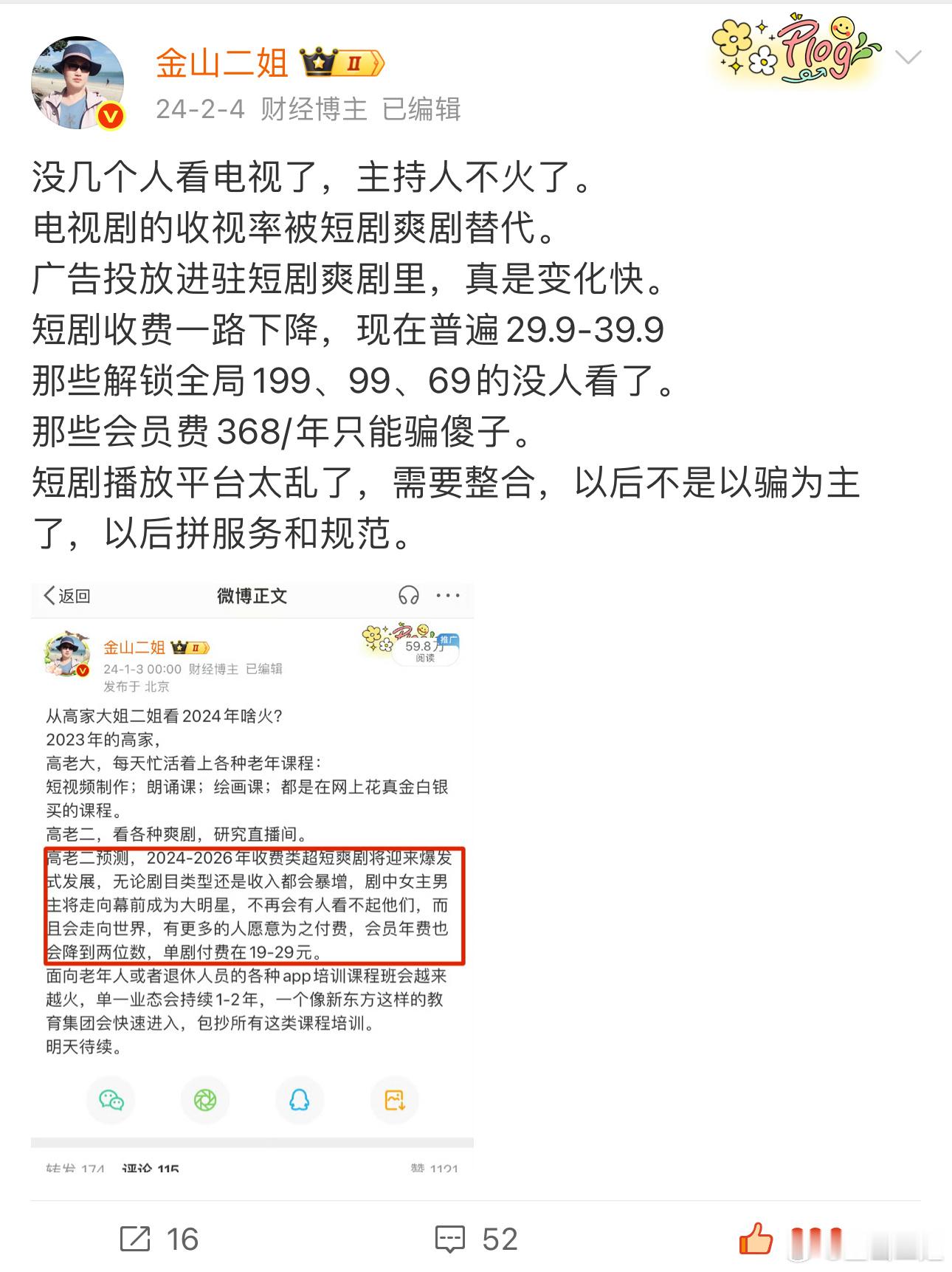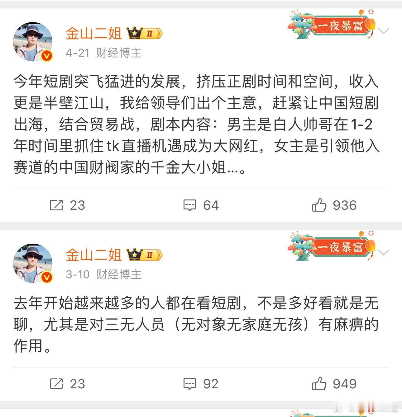 前年我在2024年经济预测中就预测短剧力压正剧,如我判断,现在短剧占据了80%以上的市场,这东西不是什么高雅艺术,就是精神成瘾,麻痹人心理,占满所有时间,特别是失业、失意、压力大的时候就像麻醉剂一样有疗效,当下它还稳定shzhian,绝了。