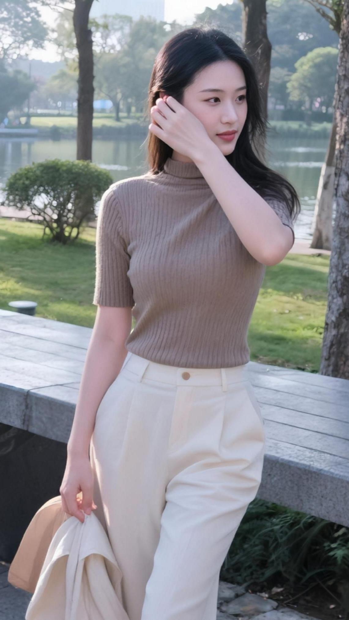 湖光裁作浅青裙, 柳色匀成暖褐纹。 风软牵衣停步处, 春阳正浸半肩云。 湖清杨柳醉春烟 暮霞染柳堤 风起于青山娇
