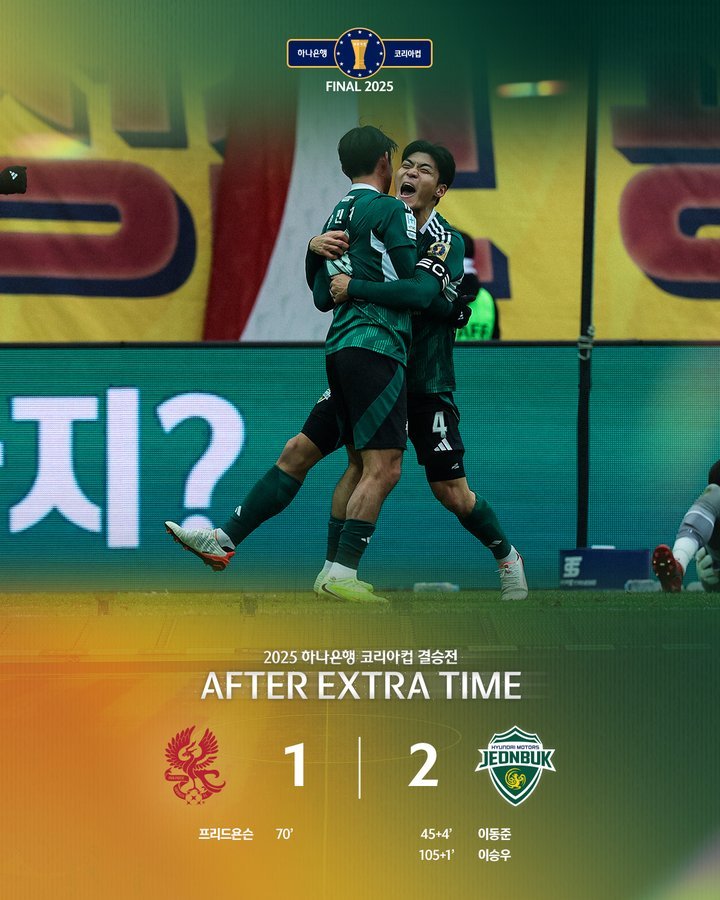 申花旧帅双冠王古斯·波耶特率全北现代先后拿下K联赛冠军和杯赛冠军,完成双冠王。全北现代捧起了队史第10座联赛冠军奖杯,以及第6座杯赛冠军奖杯。微新闻-K联赛冷足-中超故人