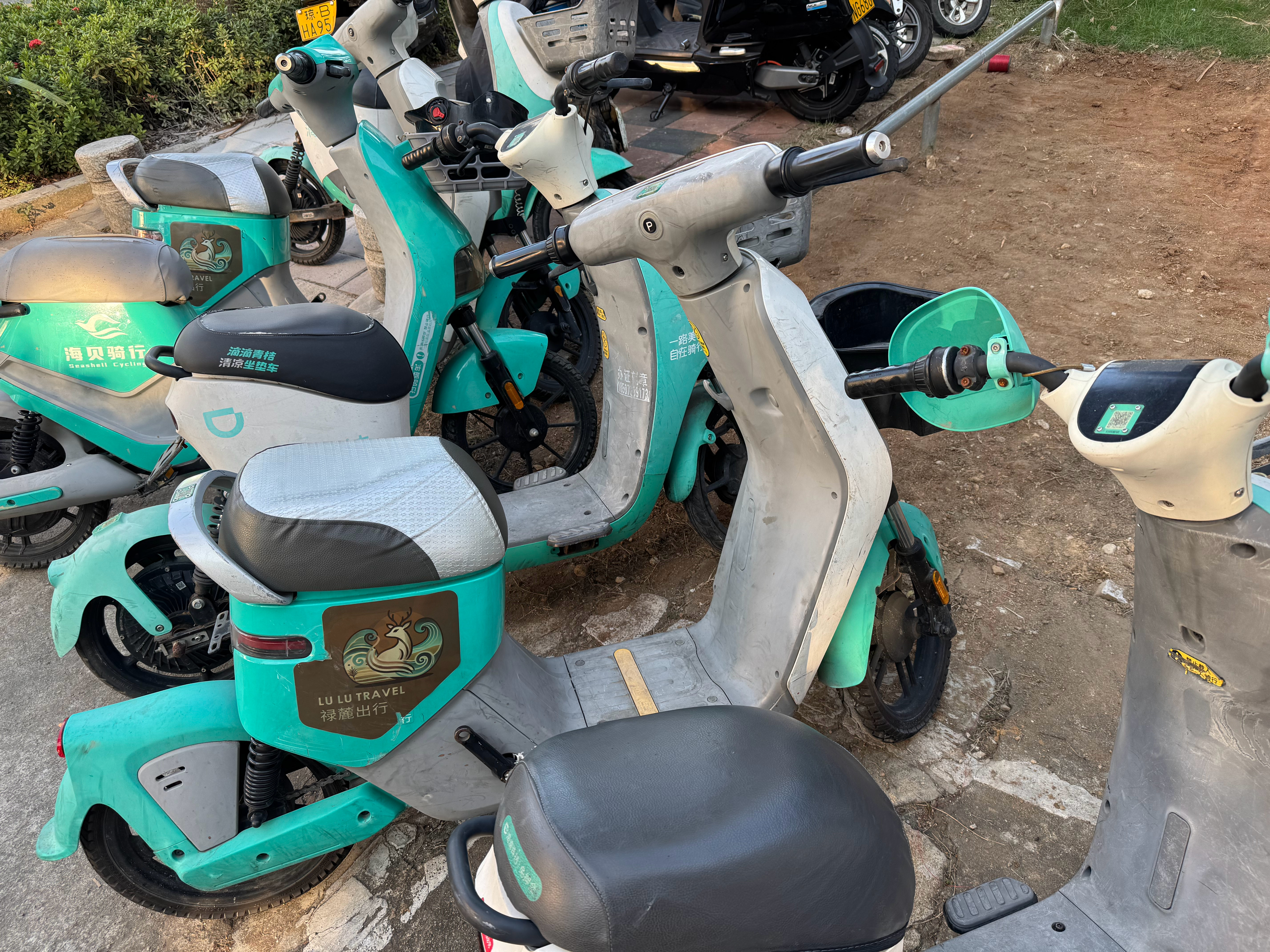 今年来海南岛国际电影节 发现三亚没啥人骑共享单车,但街上有很多这种共享电摩,算是地域特色吧。这两天我狠狠骑了好几回,已爱上这种风驰电掣的感觉跨年电影愿