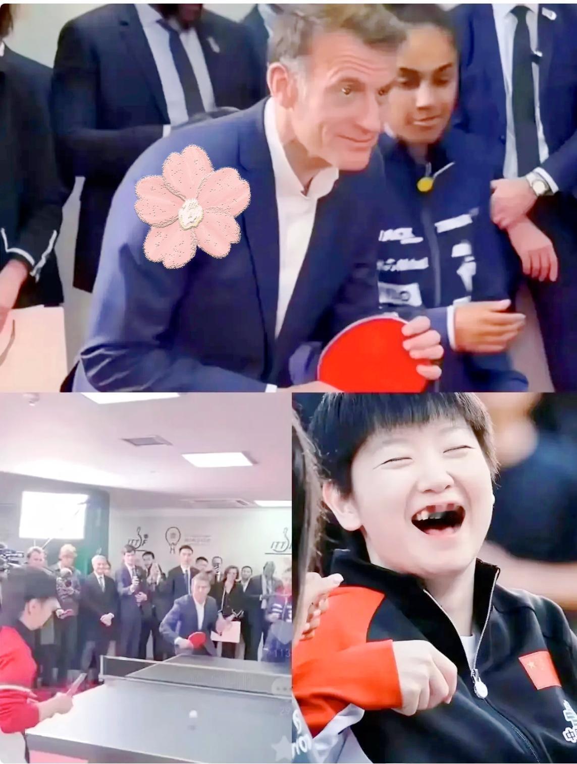 这下彻底出名了, 世界人民都看到了, 马克龙总算找到当总统的感觉了。马克龙访华后圈粉无数! 全程笑容满面 解锁多重惊喜互动 马克龙此次访华之行收获满满,不管是外交成果还是民间互动都赚足关注,全程笑容不断,状态轻松得让人感觉他比平时履职还惬意。 刚抵华,中法就签署了包括空客100架飞机订单、液化天然气长期供应等在内的多项重磅合作协议,经贸与战略协作再上新台阶。 结束北京行程后,他马不停蹄赶往成都,并非为了“盖饭”,而是去宽窄巷子体验了地道盖碗茶,还带走两罐茉莉花茶,尽显对中式民俗的喜爱。 访蓉期间,他特意走进四川大学和学子交流,又赴四川省体育馆和国乒队员开启趣味乒乓互动。 他先搭档法国选手帕瓦德对战孙颖莎、王楚钦混双组合,成功接起一记发球引爆全场; 之后还和勒布伦兄弟组队与国乒队员对练,全程没有“打赢王楚钦”的情况,赛后他和孙颖莎等全体队员合影留念,并未留下合影遗憾。 要知道孙颖莎2025年已实现世乒赛双圈金满贯,稳居女单世界第一,是名副其实的乒坛顶尖选手。马克龙这次访华真的太圈粉了! 不光签下了空客订单这类重磅合作,还跑去成都喝盖碗茶、和川大学子交流。 最有意思的是和国乒互动,成功接起莎莎的发球太有梗了,赛后还和全员合影,完全没了平时的严肃劲儿,这种双向奔赴的交流才是国与国相处的正确打开方式! 以往公开场合偏严肃的马克龙,这次全程“放飞自我”,还确确实实带着夫人布丽吉特一同出访。 他在交流中尽显亲和,既让中国民众感受到了法国元首的风趣,也收获了满满的跨国民间情谊,这样双向奔赴的交流,自然收获了大众的一致好评。 各位读者你们怎么看?欢迎在评论区讨论。