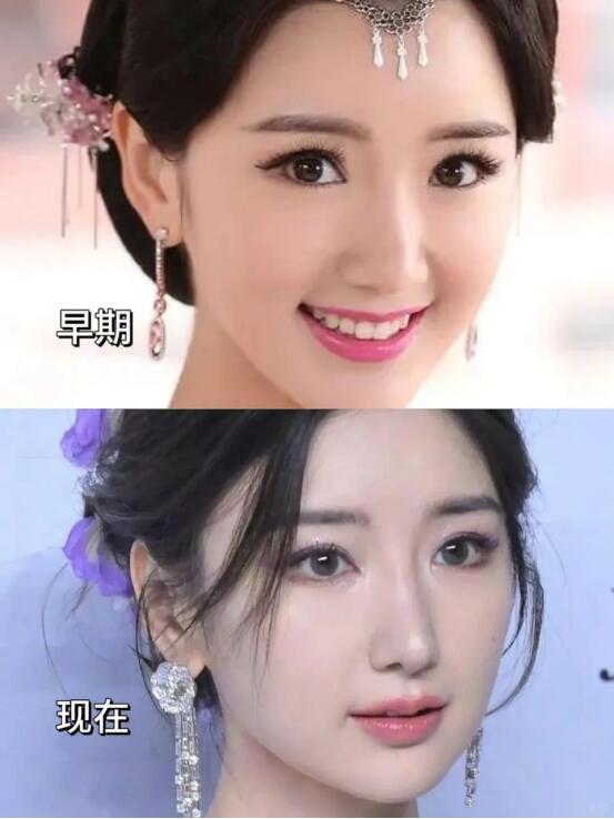 毛晓彤最早期的风格是甜美可爱,让人印象深刻的是她双灵动的大眼睛。现在的她是御姐风,幼态鼻没了,成熟度和精致度也提高了,但是那份可爱甜妹感就消失了。