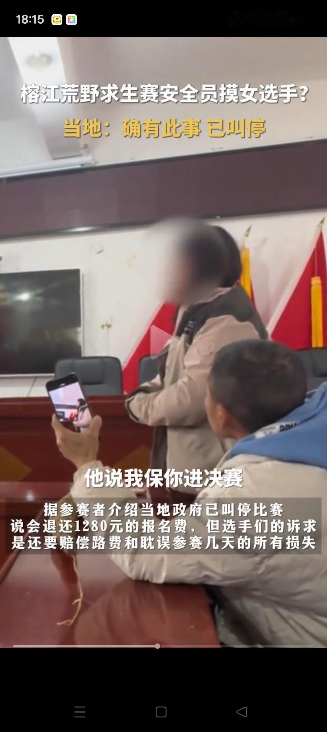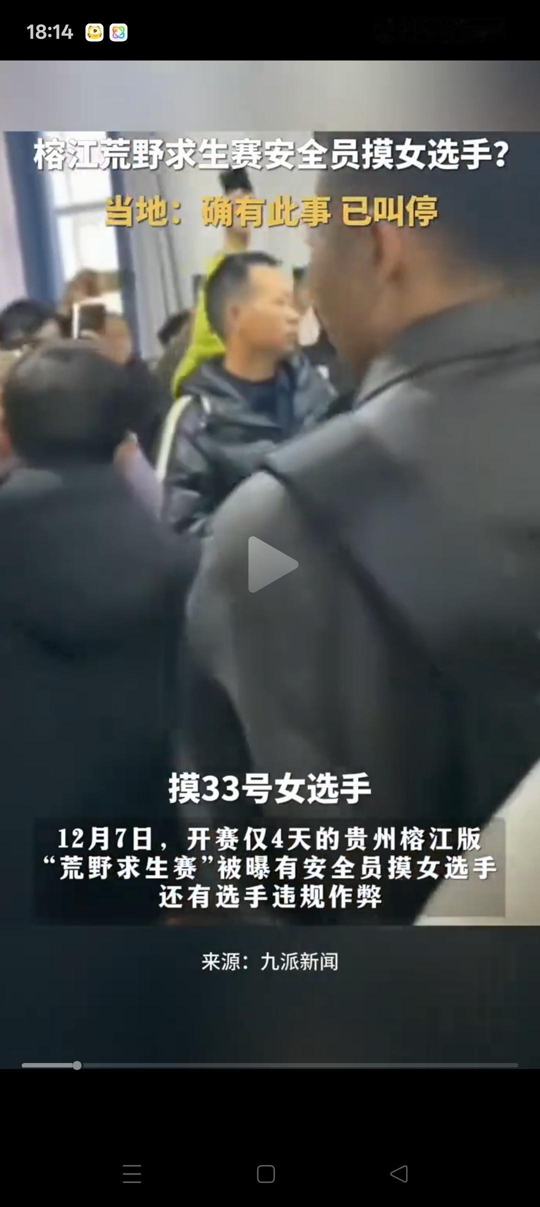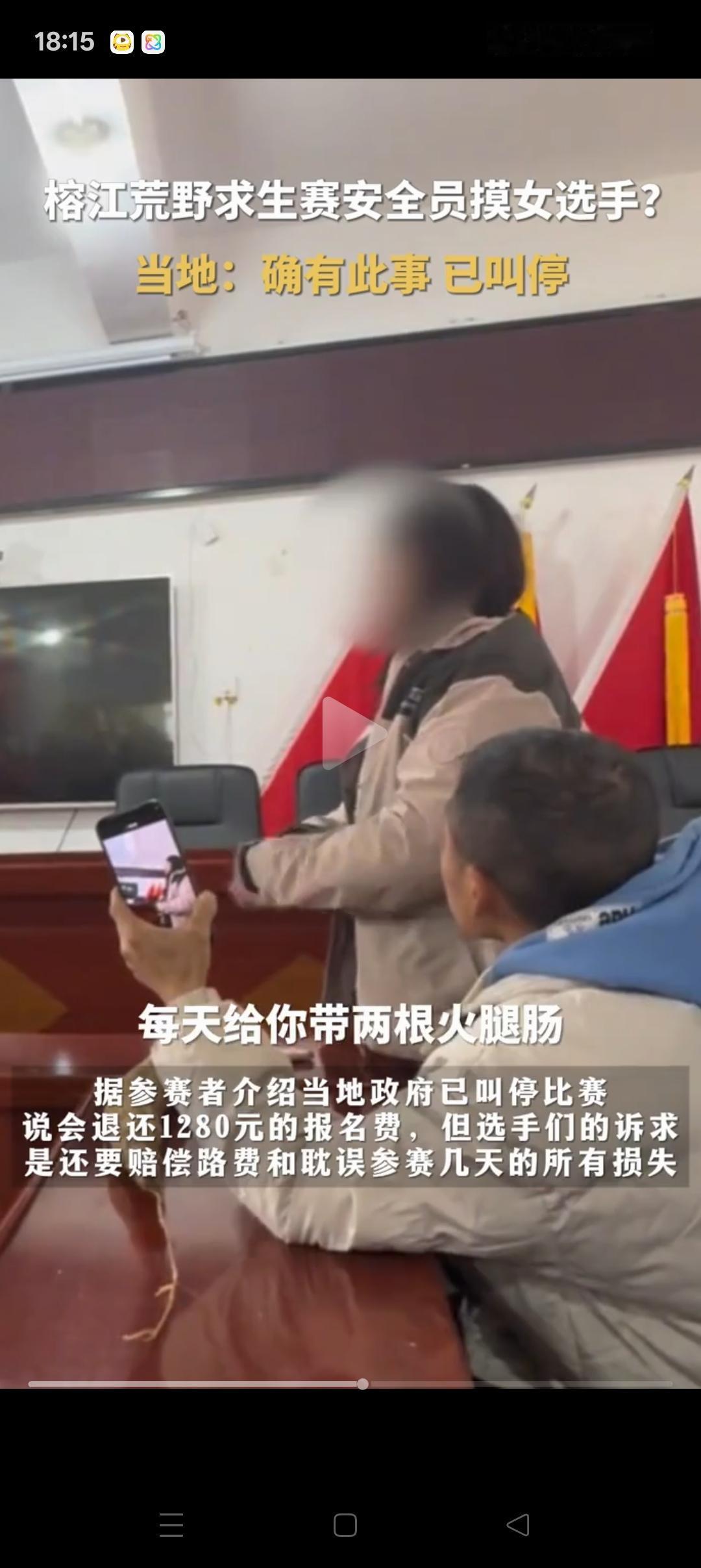 这下好了, 全国都知道了! 贵州榕江版荒野求生仅开赛4天,就有安全员向女选手动手动脚,承诺每天给2根火腿肠,就保她进决赛,且这种事还不止一例。 还有选手发现有人投喂大米,和白萝卜,当他们提出质疑时,还被安全员骂。。 据选手们透露,那些现场的安全员都是互相认识的,有些还是老表。 不得不说这次榕江荒野求生的组织方就是个草台班子,太荒唐了! 还是早点叫停吧,要不然真的丢人丢到全国了。