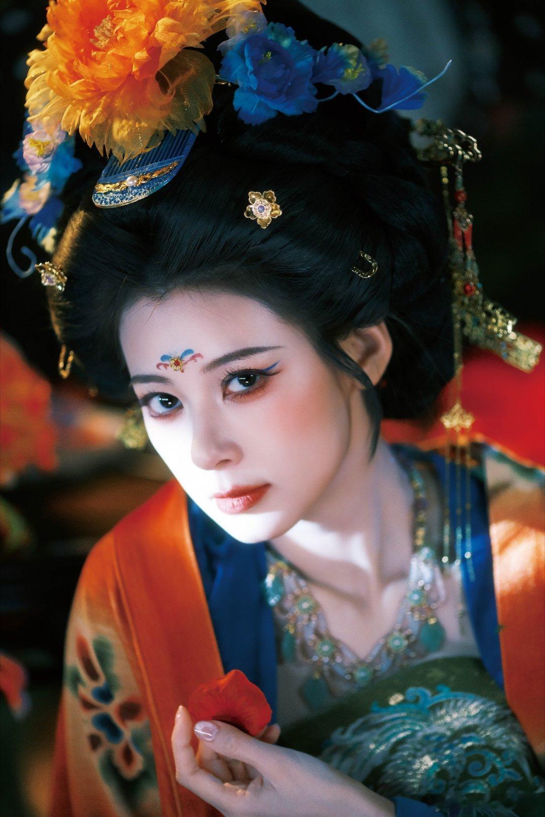 这个国风赵昭仪我笑纳了赵昭仪国风造型绝了 唐服花冠太有古典韵味 像牡丹仙子下凡赵昭仪很适合这种明媚大气的装扮,很有质感