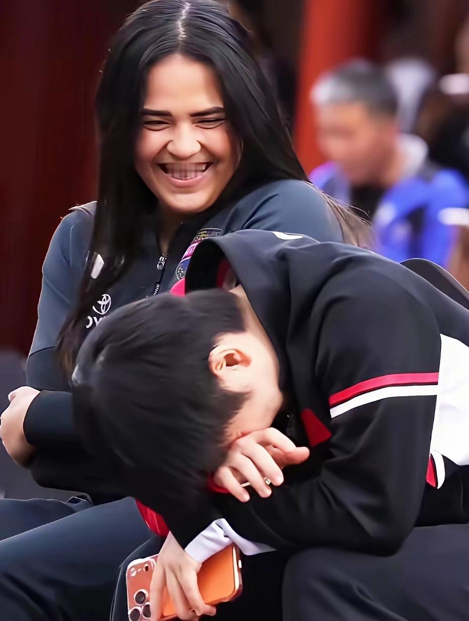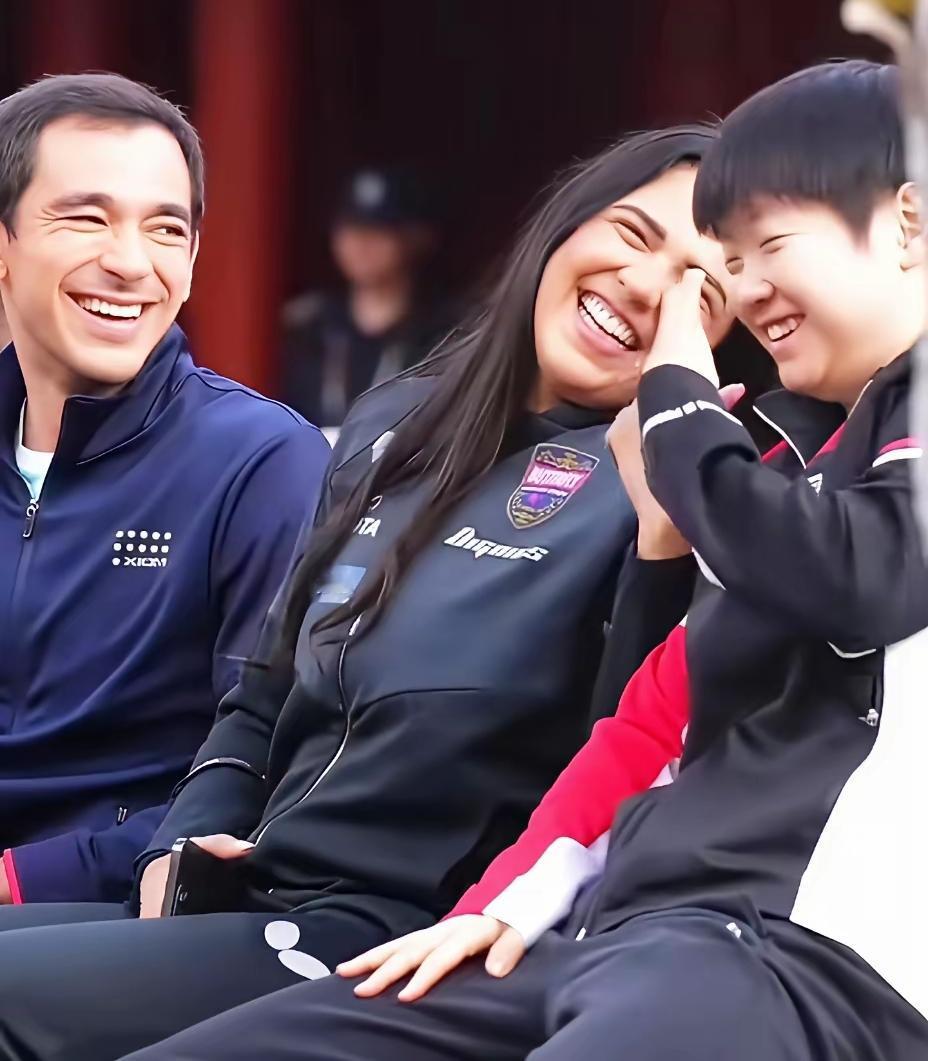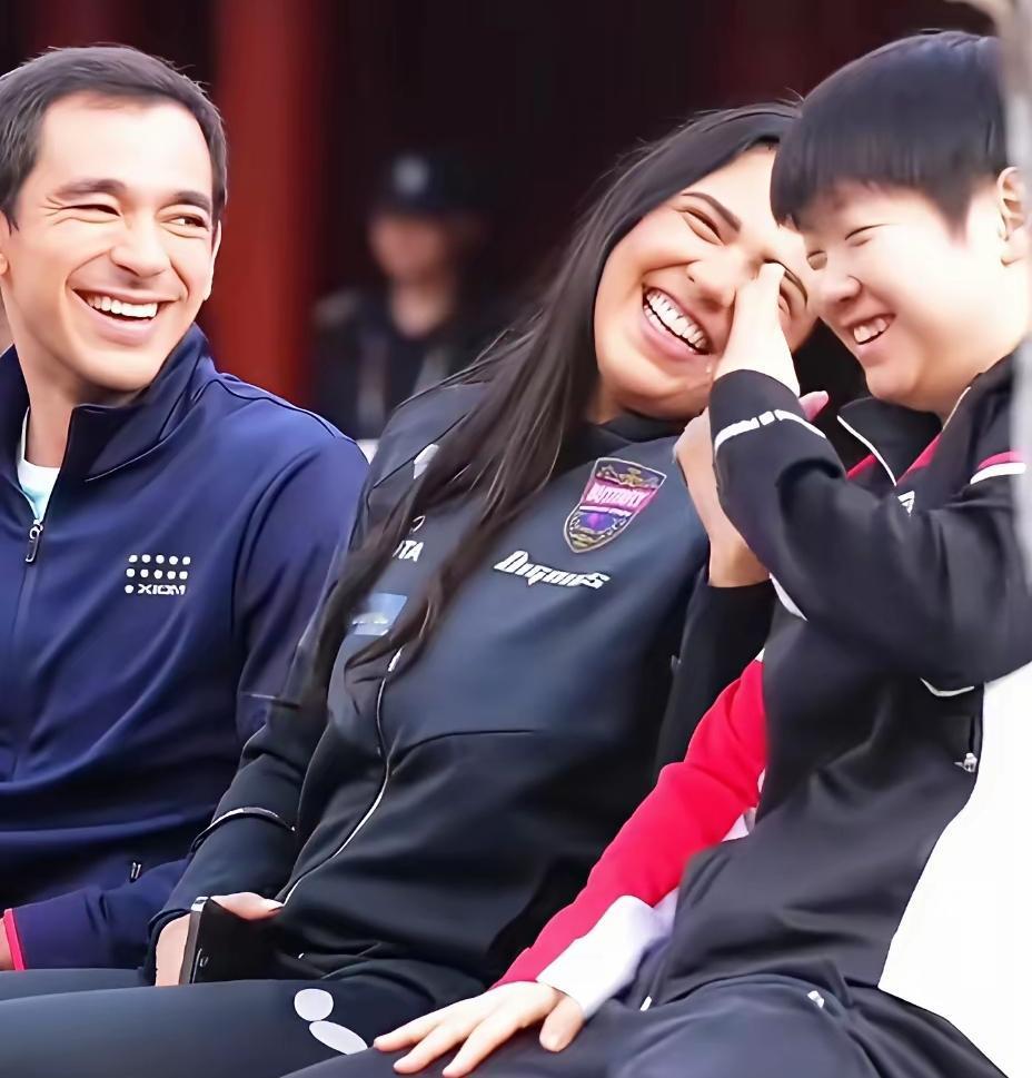 台上是对手,台下是朋友。几个人在笑啥,他们是怎样交流的,是懂彼此国家的语言,还是飙英语,莎莎可真厉害,能和别国运动员一起说说笑笑,都笑到这模样了,看来是遇到非常搞笑的事了,连雨果都沉浸在他们的笑声里。友谊不分国界,可越过语言的障碍,心里有爱一点通,莎莎就是个小精灵,和她一起聊天,心里全是阳光和快乐。