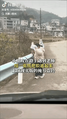 贵州王老师返校路上碰到学生, 小姑娘的反应也太逗了。 本来蹦蹦跳跳的她, 一见老师要打招呼, 立马低头盯鞋, 还掏出作业本挡半张脸, 踮脚往树后挪, 偷偷用余光瞄老师, 像在玩“我看不见你你就看不见我”的游戏。 这不是妥妥的童年复刻嘛! 其实这不仅是孩子天真, 更多亏老师没拆穿, 护住了她的小尴尬。 长大后我们丢了这份纯粹, 只剩客套招呼。 你们小时候撞见老师, 都有过啥想钻地缝的操作?路遇老师 当学生偶遇老师 贵州好老师