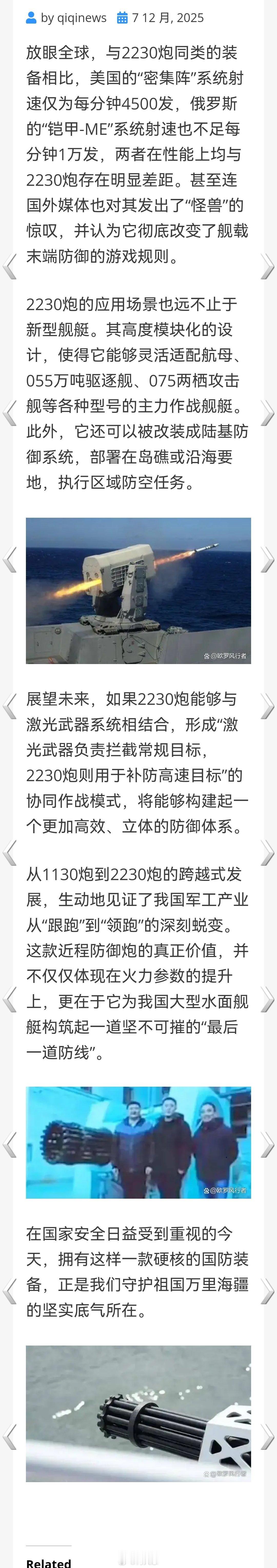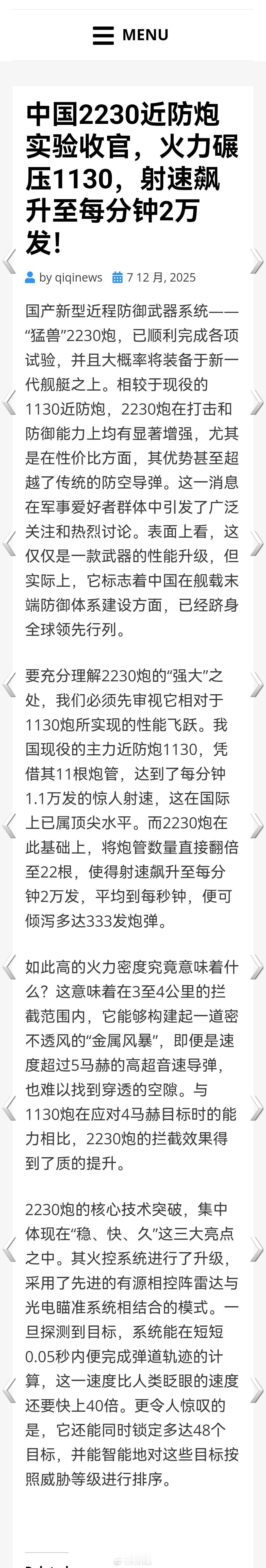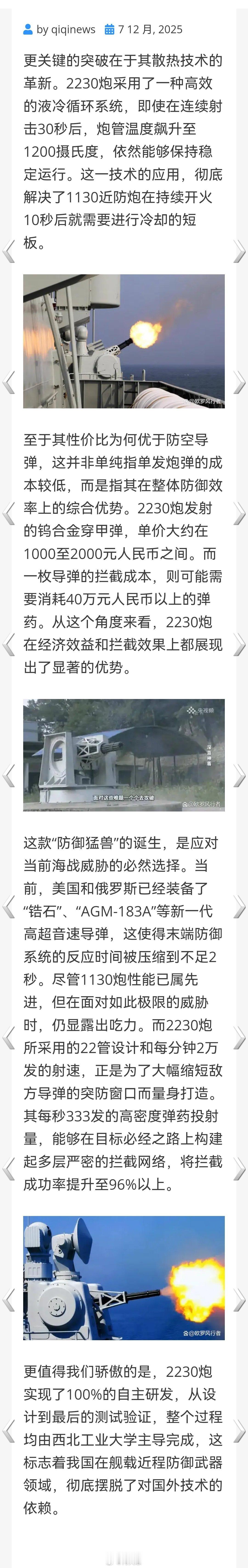 中国2230近防炮实验收官,火力碾压1130,射速飙升至每分钟2万发!海外新鲜事