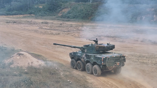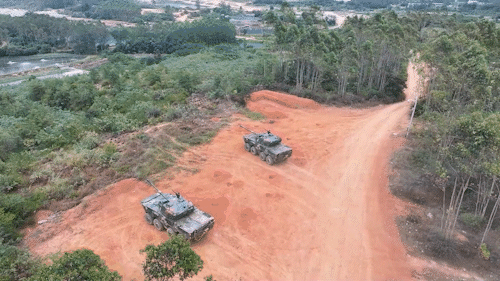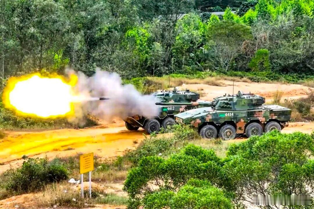 七十三集团军装甲部队在进行实弹演习,中型旅的各种大八轮全部出动,105突击炮、步兵战车作为主力突击火力冲锋在前。105炮的后坐力确实很大,就算是将低膛压,再加上炮口制退器,大八轮还是显得太轻,射击后平台后座很厉害。