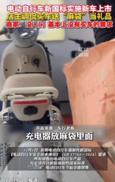 根本没人买!新国标实施后,店主为了卖车,竟然推出买车送“麻袋”活动,充电器放麻袋