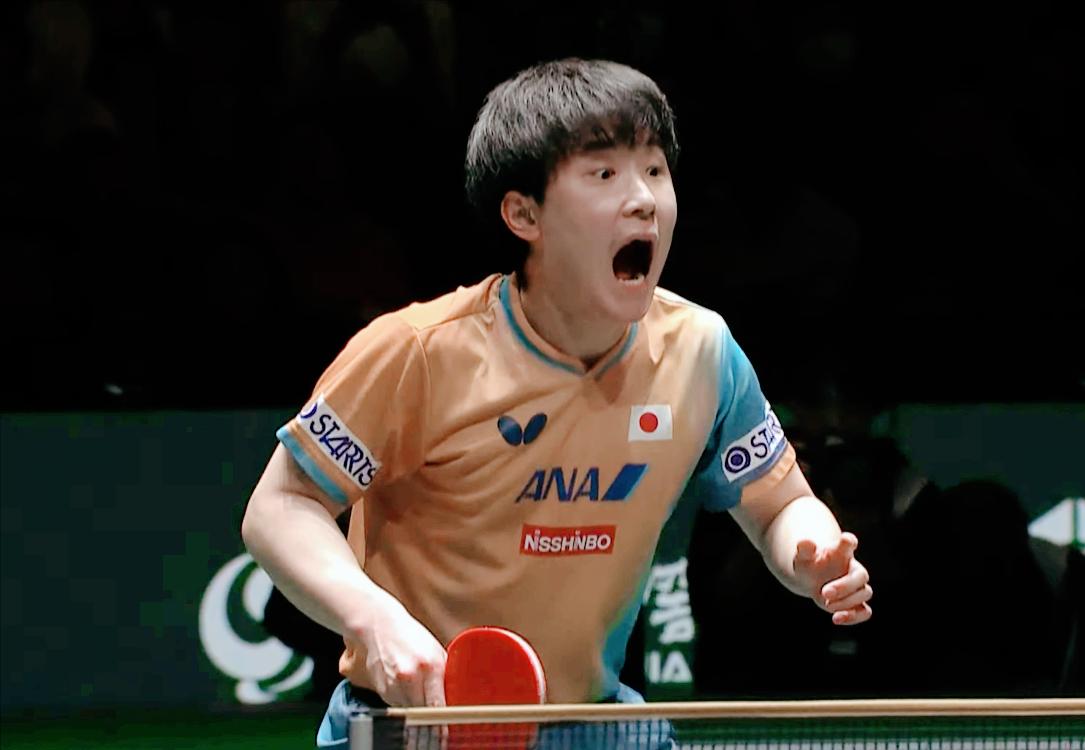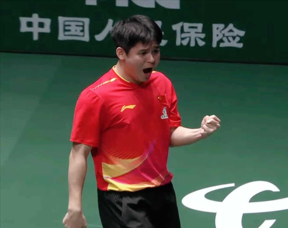 林诗栋第二局打的太燃了, 选择和张本智和硬碰硬的对拉。 结果完胜, 石头够硬, 开局4:1领先 被张本智和追到4:3后, 王皓马上叫了暂停, 回来石头连赢3球, 7:3领先, 大力也大力鼓掌。 石头10:4拿到局点, 11:5拿下