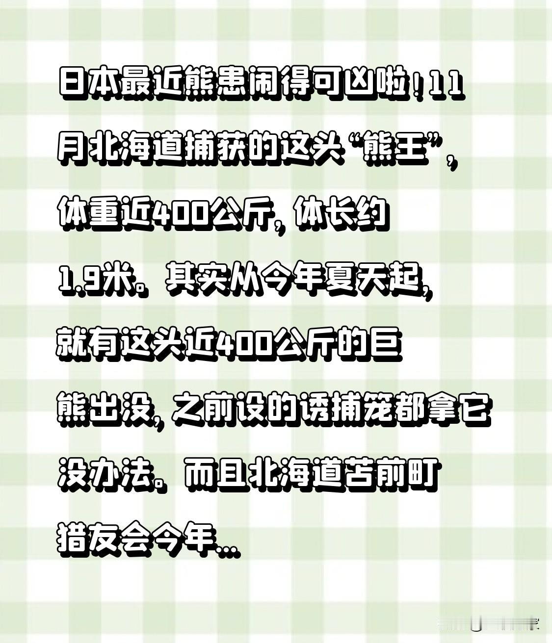 日本最近熊患闹得可凶啦!11月北海道捕获的这头“熊王”,体重近400公斤,体长约