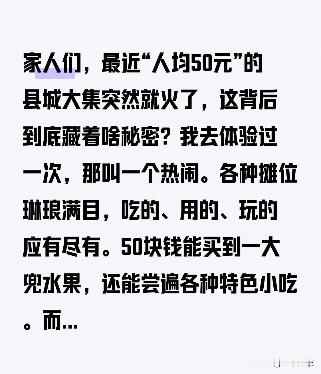 家人们,最近“人均50元”的县城大集突然就火了,这背后到底藏着啥秘密? 我去体验