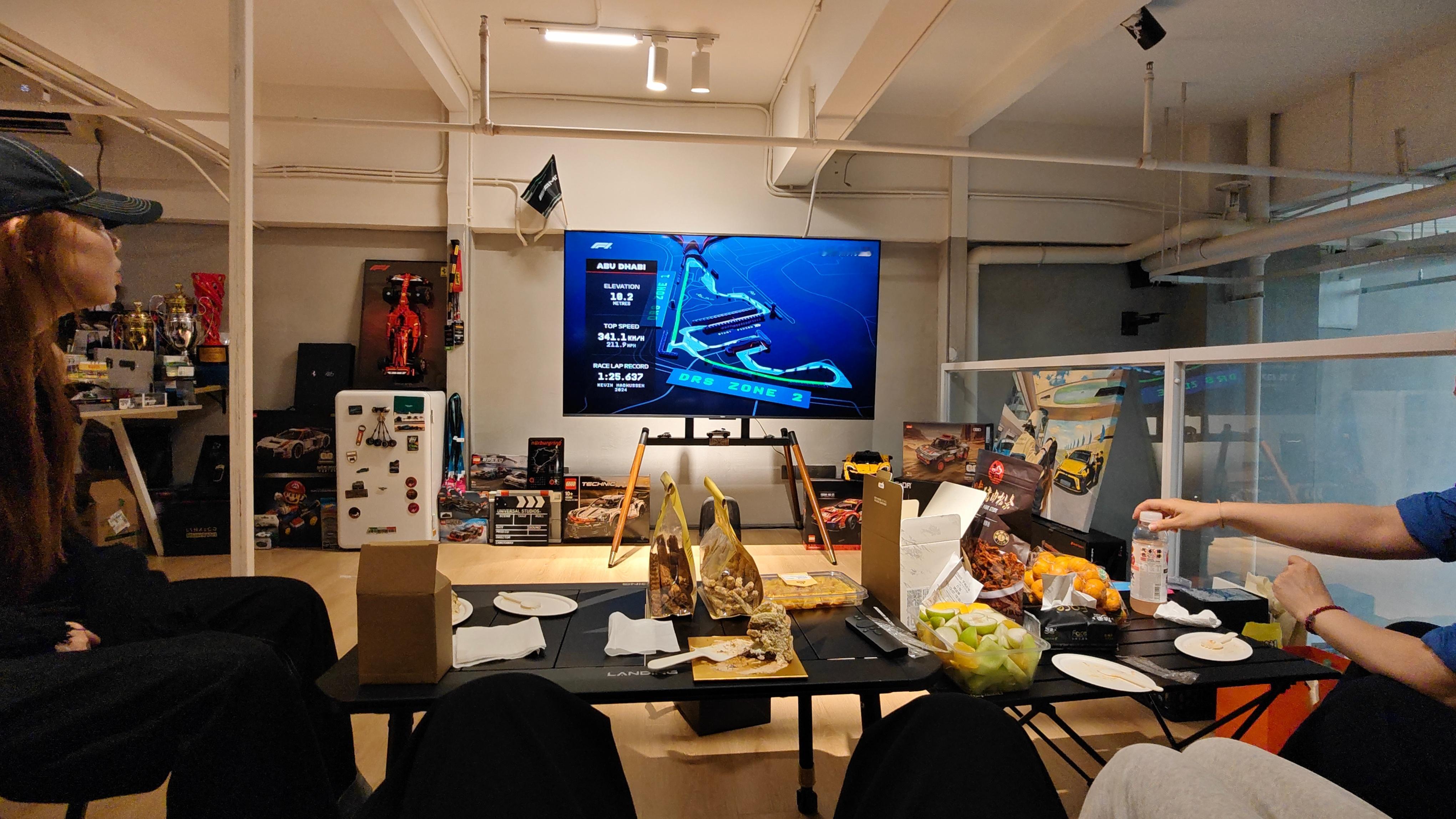水果,甜点,都就位,烧烤还在路上,人已经排排坐,等着看F1年度总决赛了!!1个半小时后,世界冠军将诞生~2025f1阿布扎比大奖赛