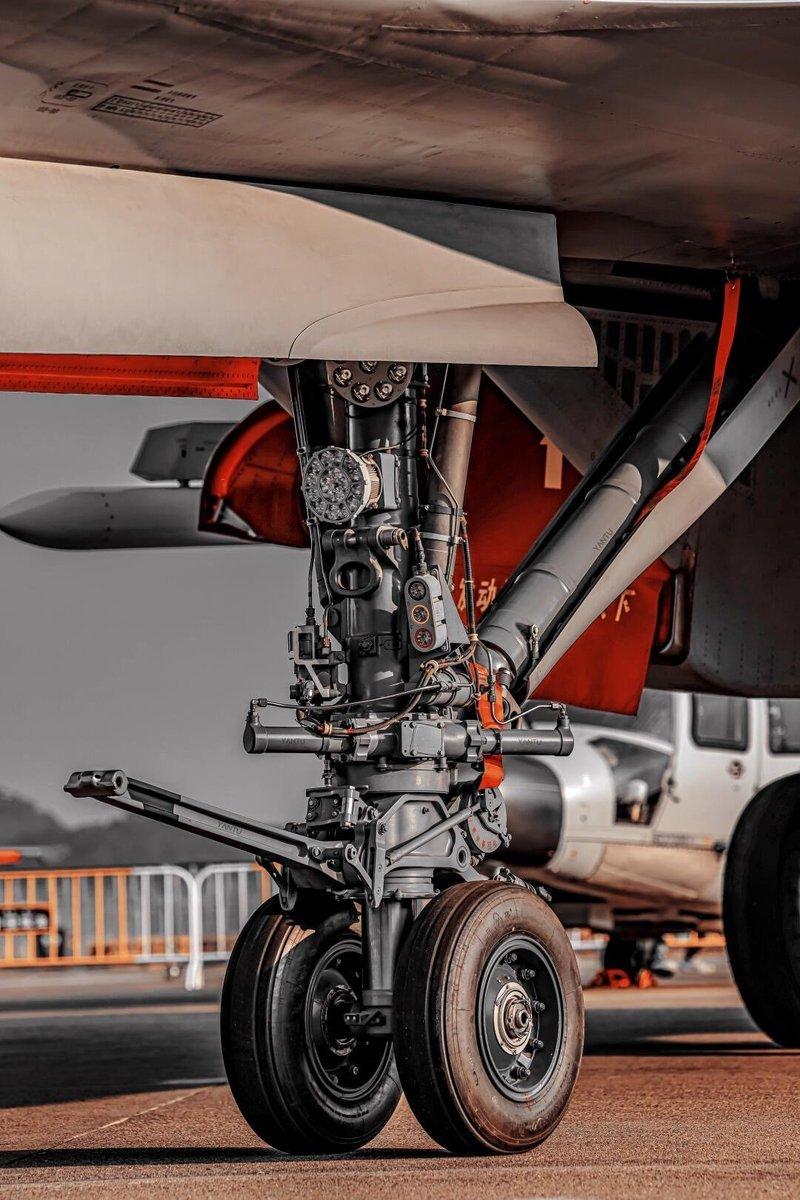 中国歼15T前起落架超级美图 毫不夸张,这起落架充满了工业之美,这就是目前最强重型舰载机的实力! 而且我们知道,美国海军的六代机F/A-XX项目已被取消,所以整个西方恐怕再没有全新重型舰载机了。