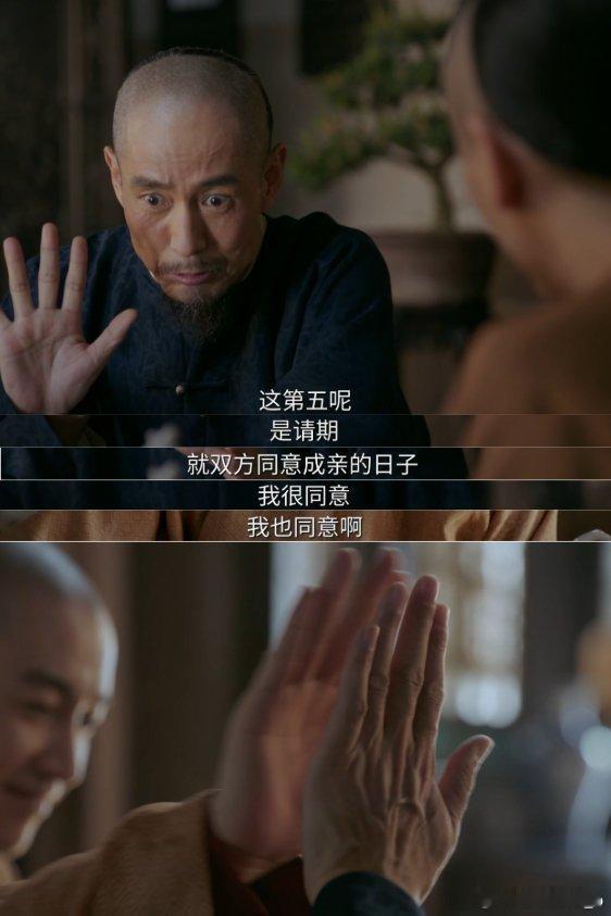 老父亲击个掌就把女儿给嫁了常四爷眼里全是认可 这波嫁女儿好暖心和女婿都处成兄弟了老丈人还是对女婿很满意的,毕竟女婿这么优秀