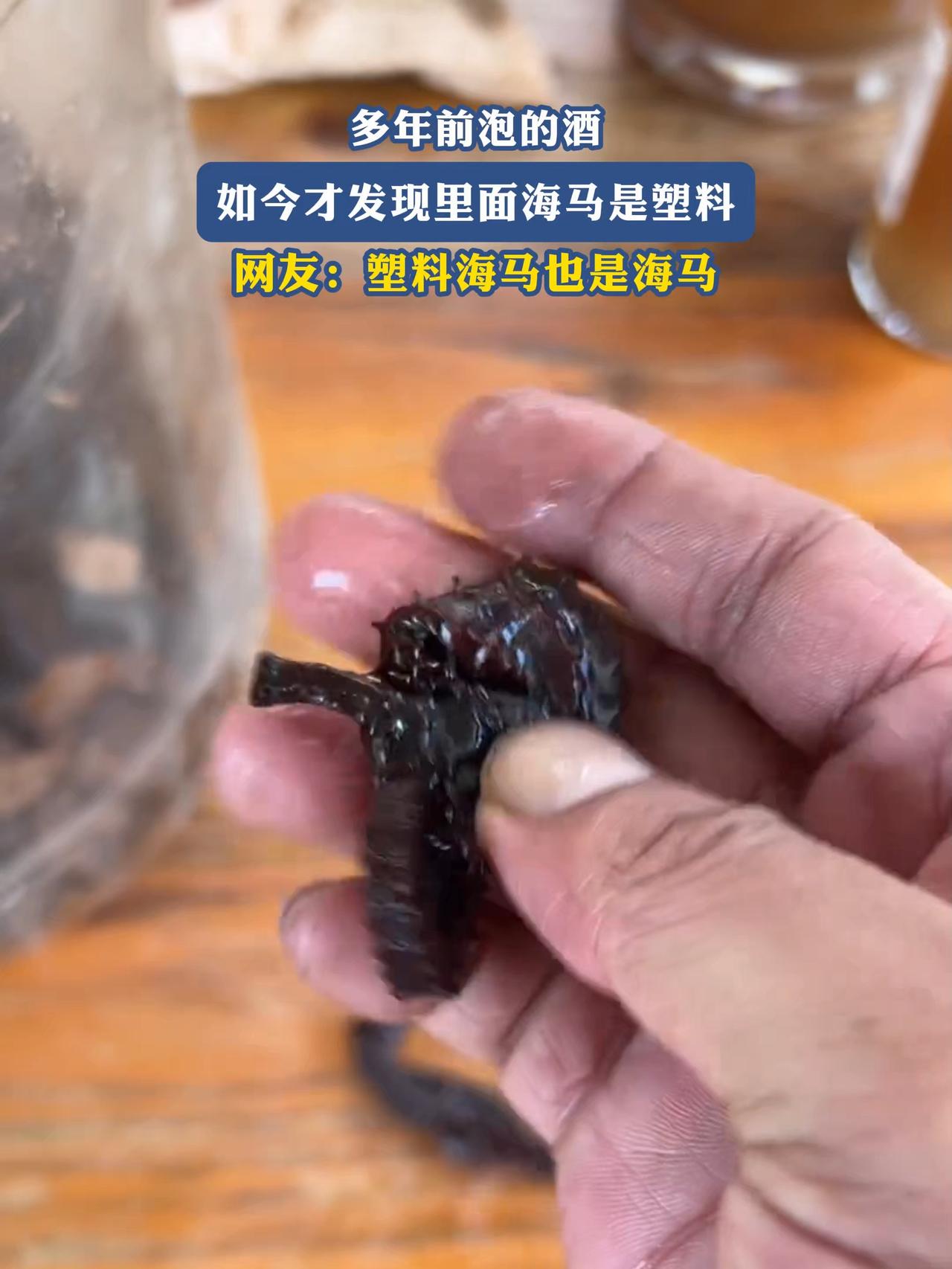 泡了十年的“海马”,结果竟是塑料!广东梅州陈先生家的“祖传”药酒被孩子打翻,清理时傻眼了——瓶里那对坚硬的海马,压根不是药材,而是塑料制品! 这酒还是老爷子当年花几千块买的,全家人当宝贝喝了十几年。陈先生哭笑不得,只能提醒大家:买药材一定走正规渠道,不然补了个寂寞。 评论区更是大型“上当现场”:有泡灵芝发现是塑料的,有养仙人球养出塑料的……看来这届商家,把“以假乱真”玩明白了。话说回来,酒里泡塑料喝了十年,这心理作用也挺强啊! 你买“名贵药材”踩过坑吗?社会热点 骗局