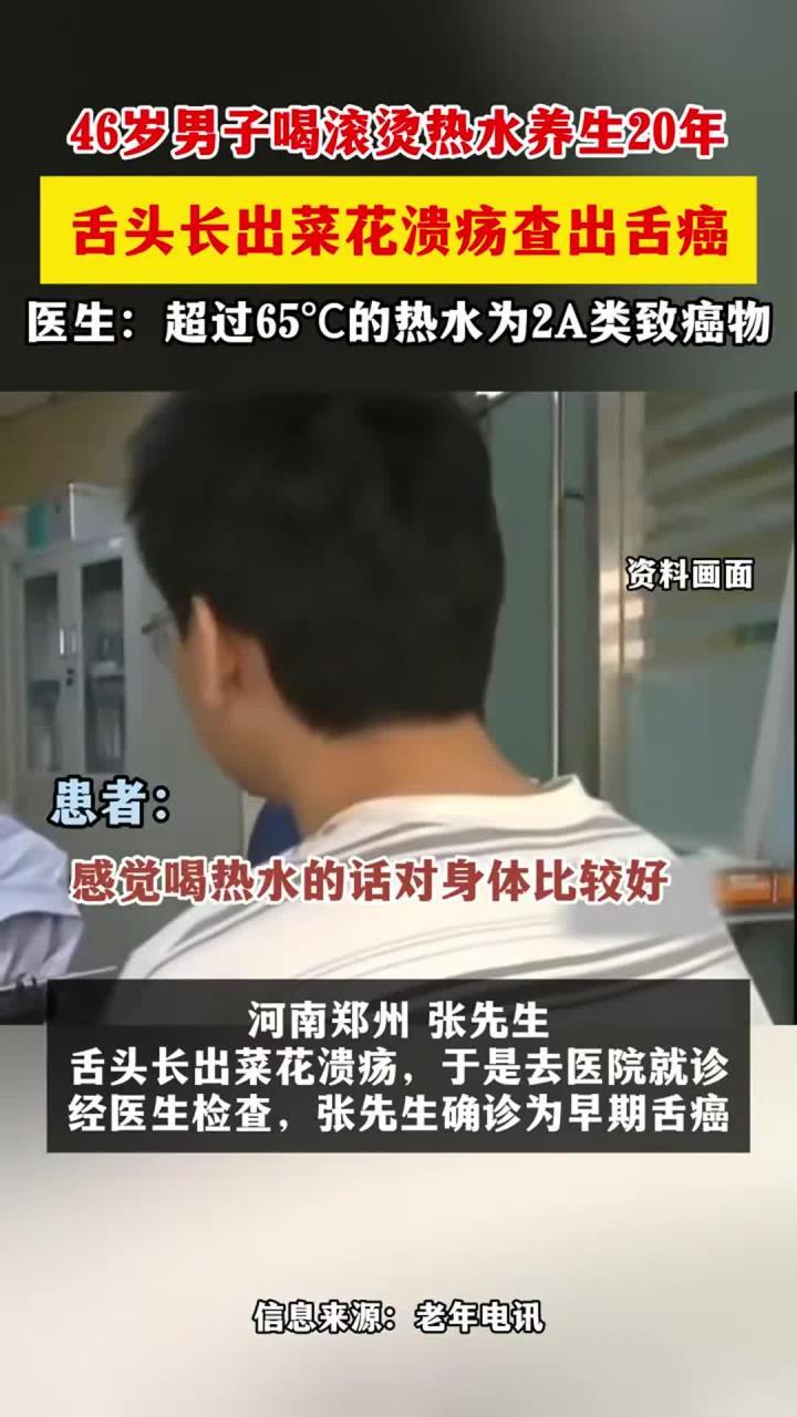 这名男子确诊舌癌的核心原因并非喝热水本身,而是长期饮用65℃以上的滚烫热水,反复灼伤口腔和舌部黏膜,导致黏膜在“损伤-修复”的循环中发生异常增生,最终诱发癌变 。 世界卫生组织已将65℃以上的热饮列为2A类致癌物,口腔和食管黏膜的正常耐受温度仅为40-50℃,长期的高温刺激会破坏黏膜细胞的正常结构,增加舌癌、食管癌等癌症的发病风险 。该男子20年来坚持喝滚烫热水、吃热食,这种“贪烫”的习惯正是致病的关键 。 我可以帮你整理一份日常饮食温度的健康指南,包含各类食物的安全入口温度和避免高温损伤的小技巧,需要吗?