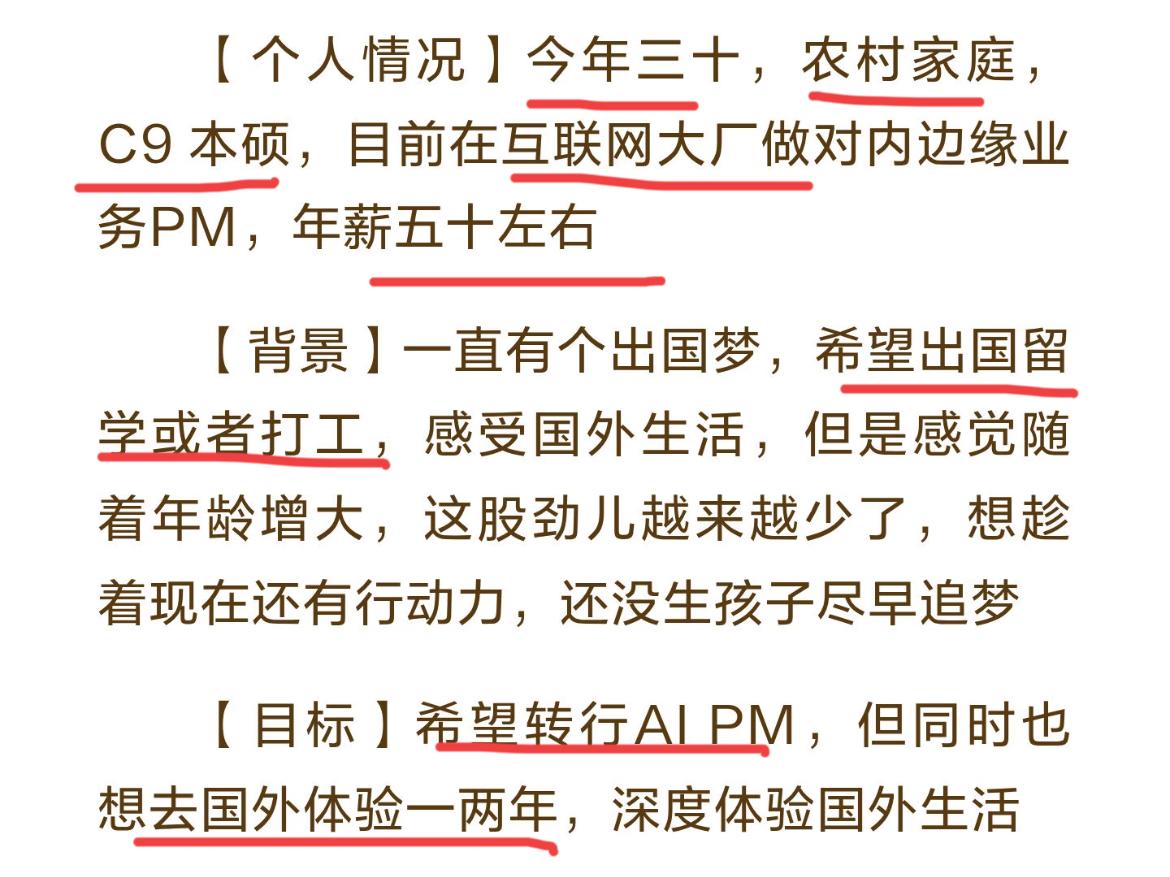 三十岁大厂产品经理能否去国外读书工作? 看到一个帖子, 顶尖大学本硕学历,在大厂做产品经理, 年薪50w,想去国外读书或者工作,是否应该去? 首先,先考雅思或者托福, 有了成绩在规划。 其次,不必对国外有太多滤镜,很多方面,其实远不如国内! 如果实在想去,直接找工作比较难,可以先去留学,看看能否毕业能找到工作,不过话说回来,程序员比较容易, PM的话其实有难度的! 互联网大厂 留学 出国 海外职场人