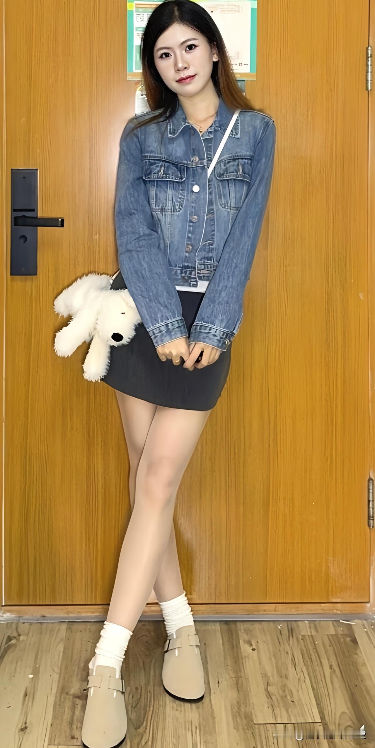 牛仔外套+短裙,搭配小白鞋,青春活力满满