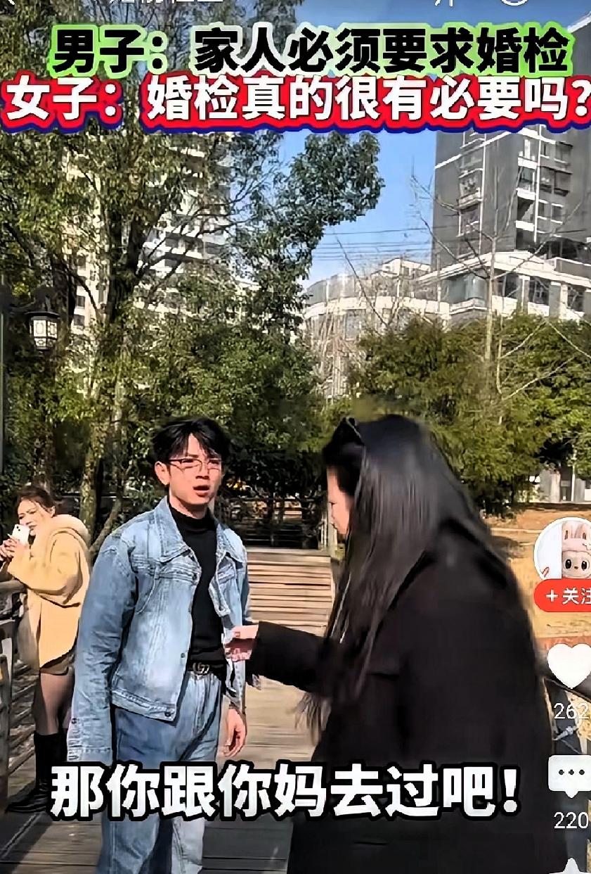 婚检真的有必要吗? 一对情侣准备结婚,但男方家长要求女孩做个婚前检查,否则不允许他们结婚, 不知道是啥原因女孩不愿意去婚检,还怒斥说,“婚检有必要吗?不婚检不行吗?你能不能尊重我一点?难道一定要婚检吗?如果一定要婚检,那你跟你妈过去吧”, 我觉得婚检正常的,七八十年代不都婚检吗!不婚检办不了结婚证的,婚检对双方都有好处的,万一有传染病能及时发现,不太明白这个女孩的逻辑,为什么婚检就是不尊重她了? 大家觉得该不该婚检?