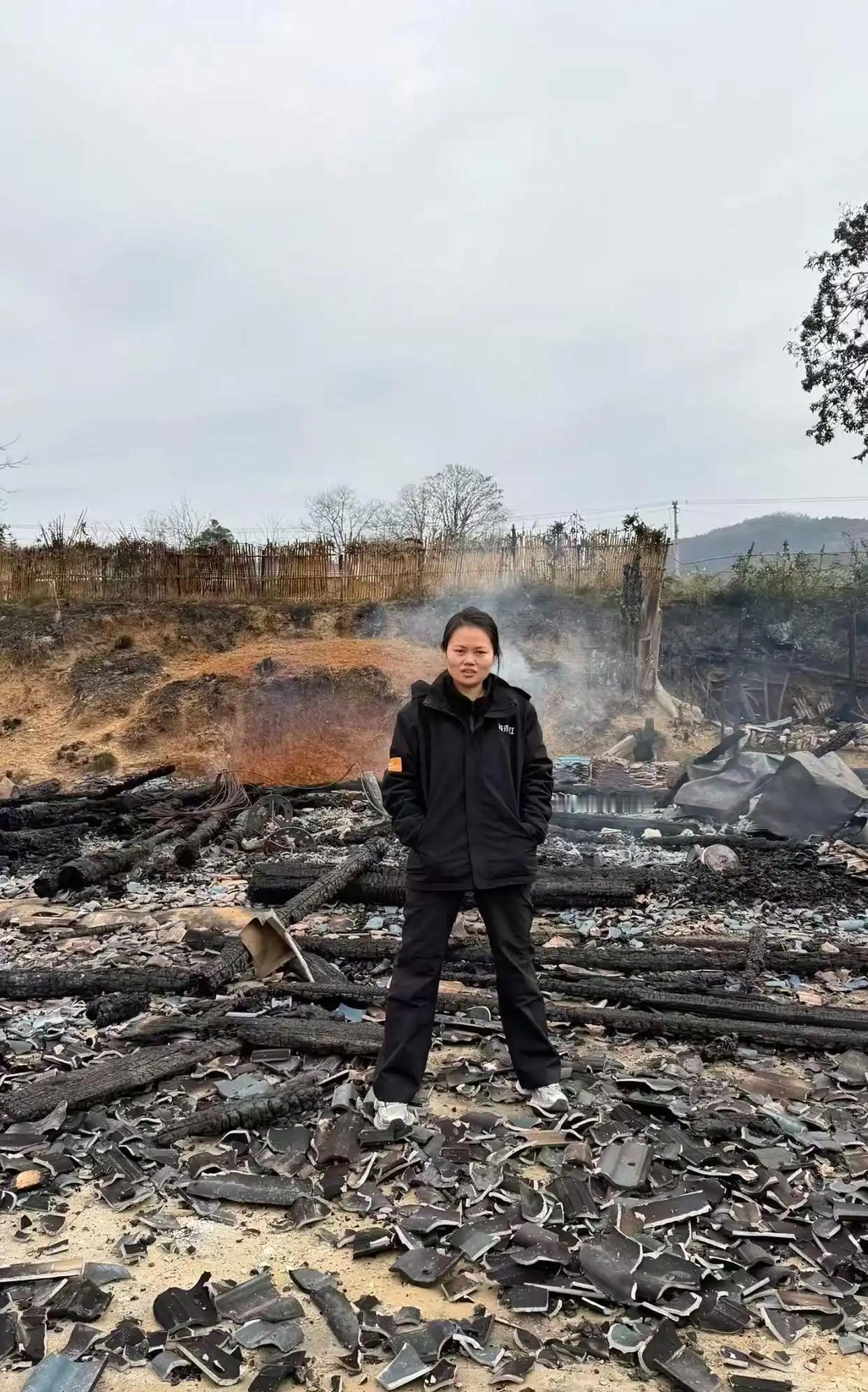 这心态绝了!湖南怀化,女子突然接到电话,得知在农村的父母房子起火了,等她赶到时,已经来不及了,不过让人意外的是,她并没有伤心和难过,反而在废墟前微笑合影。用她的话来说:只要父母健康就好 两位老人站在还冒着青烟的废墟边,手紧紧攥着衣角,浑浊的眼睛里滚着泪——那是他们住了一辈子的木头老屋,房梁上还刻着张女士小时候的身高记号。 张女士走过去,轻轻搂住母亲的肩膀,从口袋里掏出纸巾给父亲擦脸,自己脸上却没什么愁容。 村里人围在一旁议论,有人说她心大,甚至觉得她冷血,好好的家没了,怎么还笑得出来? 换作别人,或许早就崩溃大哭了吧? 她只是拍了拍母亲的背,声音不大却很稳:“哭啥呀,您和我爸好好的,比啥都强——这房子烧了,咱再盖新的;要是人没了,我上哪儿找爸妈去?” 父母当晚正在堂屋看电视,没烧火也没点蜡烛,突然“啪”一声断电,紧接着头顶就窜起火苗,木头房子着起来跟撒了油似的,噼里啪啦往上蹿。 “也就两三分钟的事儿,我和你爸连鞋都没顾上穿好就往外跑。”父亲后来回忆时,手还在微微发抖,可眼神里全是庆幸。 村里人发现火光时,老两口已经站在院坝里了,有人赶紧拨了张女士的电话,有人提了水桶去扑火,可惜火势太猛,等她从县城赶到,屋顶都塌了大半。 她蹲下身,从废墟里捡起一块没烧透的木片——那是当年父亲亲手给她做的小板凳腿,边角还留着磨圆的弧度。 “小时候坐这板凳吃饭,摔了好几次呢。”她笑着递给母亲,母亲接过木片,眼泪又下来了,这次却带着点笑意。 有人把她微笑合影的照片发到网上,评论区吵翻了:“房子烧了还笑得出来?”“这是没感情吧?” 她看到了,没生气,反而跟网友解释:“我爸妈今年都七十多了,这辈子啥苦没吃过?房子没了可以修,钱没了可以挣,可要是人没了,老天爷会给第二次机会吗?” 这话听着简单,却戳中了多少人——我们总在为失去的东西惋惜,却忘了手里攥着的才最该珍惜。 木头房子烧没了,可父母眼里的光还在;老屋的梁塌了,可一家人的心没散。 她的笑,不是对灾难的漠视,是在确认最珍贵的“活物”安好后,从心底涌上来的踏实——就像雨后泥土里冒出的新芽,看着不起眼,却藏着顶破石头的劲儿。