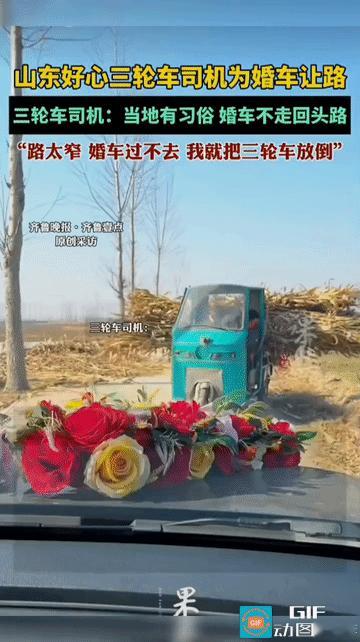 “山东人不差事儿!”山东济南,一位大哥骑着三轮车载玉米杆行驶在路上,迎面过来一队婚车队。大哥赶紧给婚车让路,但路太窄,婚车还是无法过去。大哥一点不带犹豫,直接把自己的三轮车推翻了,因为婚车不可以走回头路。而新郎也很懂事,立马让朋友给大哥送上一个红包!网友:两个都是有格局的人! 这天大哥正开着自己家的三蹦子从地里往家里运玉米杆子,刚好又一队婚车队迎面来了过来。大哥远远看到后就尽量把三轮车往路边上开给婚车让路,可是车的玉米杆子伸的太长了,车过不去,一不小心可能车就被刮坏了,所以司机停了下来。 大哥看婚车停下来了就明白可能还是没办法过去,也赶紧下来查看,然后毫不犹豫的直接把自己的三轮车推翻,当然有玉米杆子支撑,三轮车并没有彻底翻,只是歪在旁边,但车也可过了。 事后接受采访时大哥说:“当地有习俗婚车不可能倒车,结婚不能走回头路,不吉利。” 而新郎也是个会来事的,看大哥那么爽快的就给自己让路了,立马让朋友给大哥送上一个红包,算是对大哥的答谢! 不得不说大哥太棒了,把三轮车推倒了让婚车通过,这是对新婚最好的祝福,也体现了大哥的素质和心灵深处的美! 再看看那些拦车要东西的,同样是生在太阳底下的人,做人的差距怎么那么大呢?一群是泼皮无赖拦婚车,一个是推翻自己车给婚车让道!真的是没有对比就没有伤害! 人间最好的体面,从来不是争道,而是成人之美。最通透的智慧,是把方便留给别人,把温暖留给人间。 (视频来源:果然,侵删[祈祷])