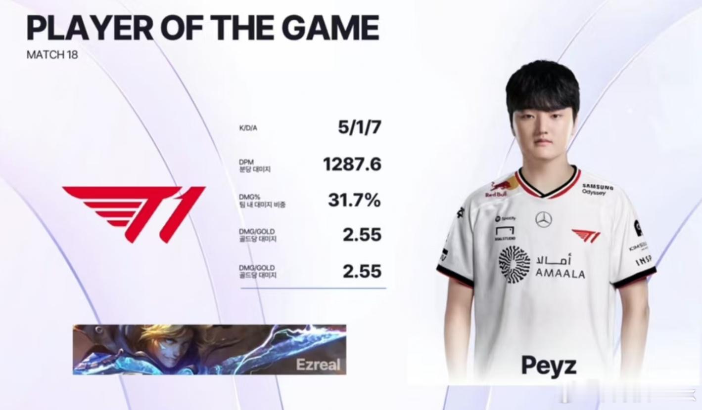 等了一晚上终于看到了HLE、T1全主力的比赛,前者速推越南队,后者碾压日本队。对线压制,团战游龙,伤害占比和伤转拉闷,Peyz加入T1首秀MVP有了!Faker岩雀关键抬终结比赛,不过给我印象最深的还是兰子那波节目效果,玩个挖掘机越塔被日本队上单反杀了如果决赛是T1打HLE,两边都是全主力一定很精彩!明天的比赛好看了,有Faker对战Scout,还有HLE打GEN。Peyz加入T1首秀MVP2025KeSPA杯ACG优创官
