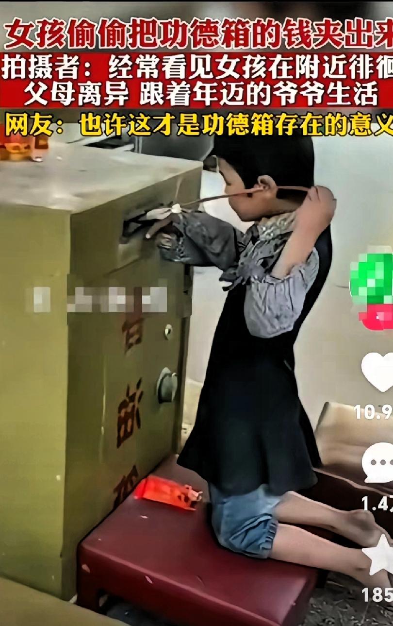 这件事该不该支持呢? 刚在网上刷到这件事,有知情人透露一小女孩经常跪在寺庙功德箱前把里面的钱夹出来, 居听说女孩的父母离异,她跟着年迈的爷爷两个人生活。爷爷年纪也大了,没有劳动能力,两个人相依为命。所以小女孩经常在这夹钱。 网友们议论纷纷:有说这才是功德箱存在的意义,小女孩生活困难,救助他们才是最大的功德! 也有网友说:尽管同情她但也不支持她的行为,放纵这种行为让她养成习惯只会害了她! 友友们你们支持不支持女孩的做法?