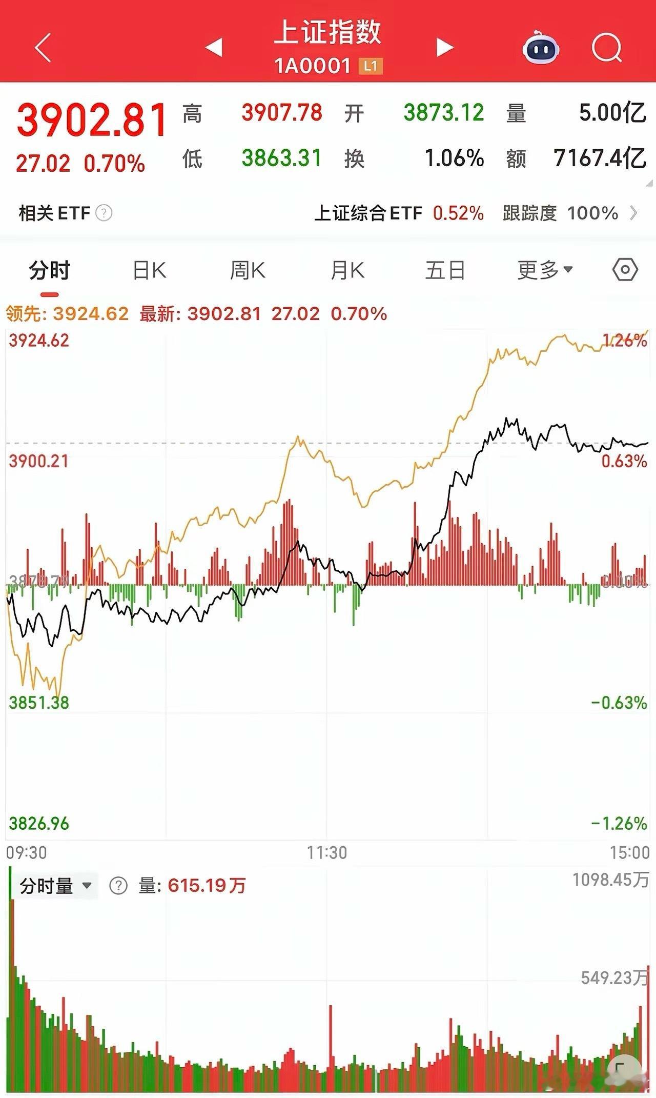 明天大A要继续上涨啦,但也不要想太简单了。虽然周五下午的放量拉升使得多头出现明显加强,然后成交量还是只有1.7万亿,所以要想大涨的话,明天就必须在券商及保险板块的带动之下,板块(特别是科技板块)全面开花,而且最主要的还是成交量。如果无量上涨也不会持续上涨,但明天收阳的概率还是比较大的,还是那句老话,在市场没有明显放量上涨时,控制好情绪就行。