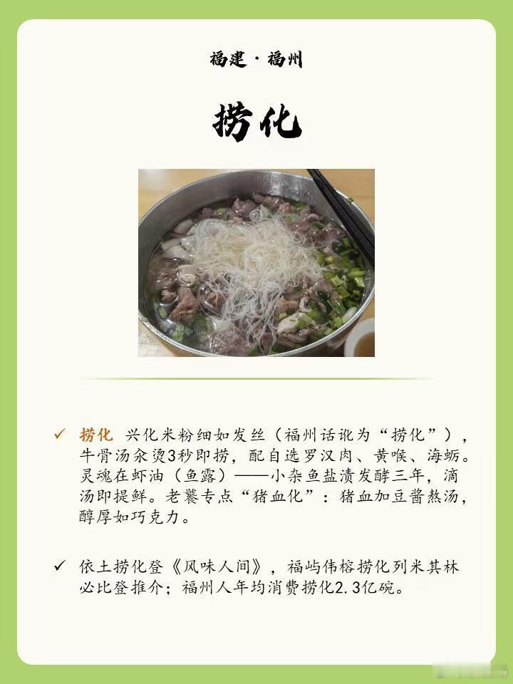 原来福建荔枝肉里没有荔枝 得知福建荔枝肉里没荔枝,内心满是疑惑,尝过之后,疑惑全消,只剩下对这独特风味满满的喜爱!福州人吃早餐是给锅边画圈圈 画着圈圈煮出的鼎边糊,是福州人早餐的温暖慰藉,超赞!