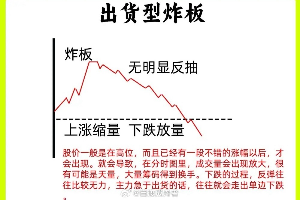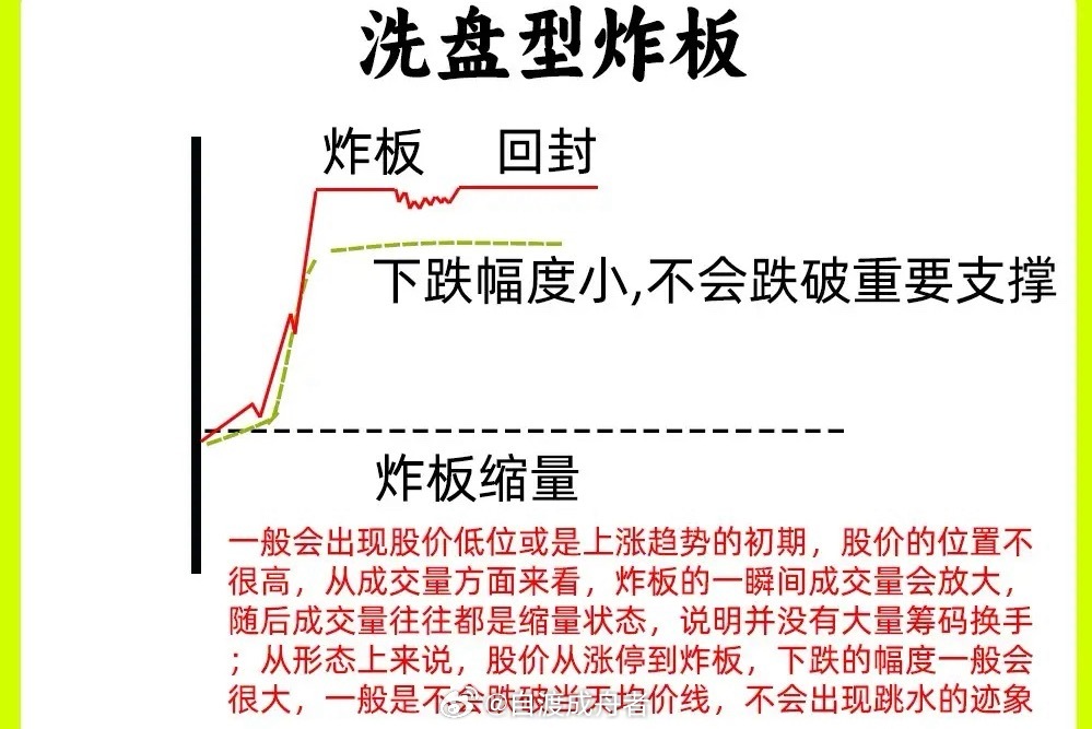 涨停炸板后留还是走?一文分清主力洗盘与出货注意了!个股涨停后突然炸板,是咬牙持有还是果断离场?很多投资者会陷入纠结——炸板本质是市场分歧的集中爆发,但核心分歧点在于:主导这波行情的主力,到底是在洗盘还是出货?没理清背后逻辑前,盲目操作很容易踏错节奏。下面这篇干货,帮你精准区分两种走势,避免踩坑!一、洗盘型炸板:主力“震仓”,分歧后或再掀行情主力的核心目的是清洗不坚定筹码:股价早期封板后,通过炸板制造恐慌,让散户误以为行情终结、急于抛售,主力趁机完成筹码换手,为后续拉升扫清障碍。这类炸板的典型特征的:1. 位置特征:多出现于股价低位,或上涨趋势初期,整体涨幅不大,主力尚未获利离场;2. 量能表现:炸板瞬间成交量放大(恐慌盘出逃),但随后快速缩量回落,说明没有大量筹码持续抛售,筹码锁定性较强;3. 形态与支撑:从涨停到炸板的下跌幅度有限,通常不会跌破当日均价线(分时黄线)或关键支撑位,无明显跳水迹象;4. 后续走势:洗盘结束后,主力可能快速重新封板,或次日依托支撑位继续上行。二、出货型炸板:主力“跑路”,分歧后多是下跌主力的核心目的是趁机套现离场:借助市场热情高涨的氛围,先封板吸引散户追涨,再通过炸板快速抛售筹码,完成出货动作。这类炸板的典型特征的:1. 位置特征:多出现于股价高位,且前期已积累较大涨幅,主力获利空间充足;2. 量能表现:炸板时成交量急剧放大,甚至出现天量,大量筹码完成换手,主力出逃痕迹明显;3. 形态与反弹:下跌过程中反弹无力,若主力急于出货,可能走出单边下跌走势,毫无抵抗;4. 盘口细节:涨停时封单量较小,说明多方力量本就薄弱,封板稳定性差,为后续炸板埋下隐患。以上就是涨停炸板后,主力洗盘与出货的核心区别,都是短线交易的基础知识点,建议反复吃透。结合案例图加深记忆后,再遇到类似情况,就能根据位置、量能、形态快速判断,做出留或走的正确决策。