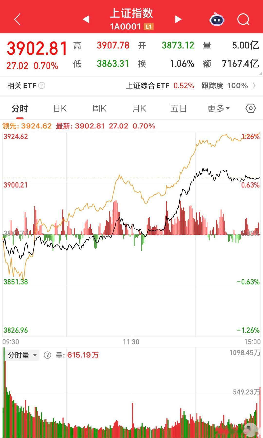 明天大A要继续上涨啦,但也不要想太简单了。虽然周五下午的放量拉升使得多头出现明显加强,然后成交量还是只有1.7万亿,所以要想大涨的话,明天就必须在券商及保险板块的带动之下,板块(特别是科技板块)全面开花,而且最主要的还是成交量。如果无量上涨也不会持续上涨,但明天收阳的概率还是比较大的,还是那句老话,在市场没有明显放量上涨时,控制好情绪就行。