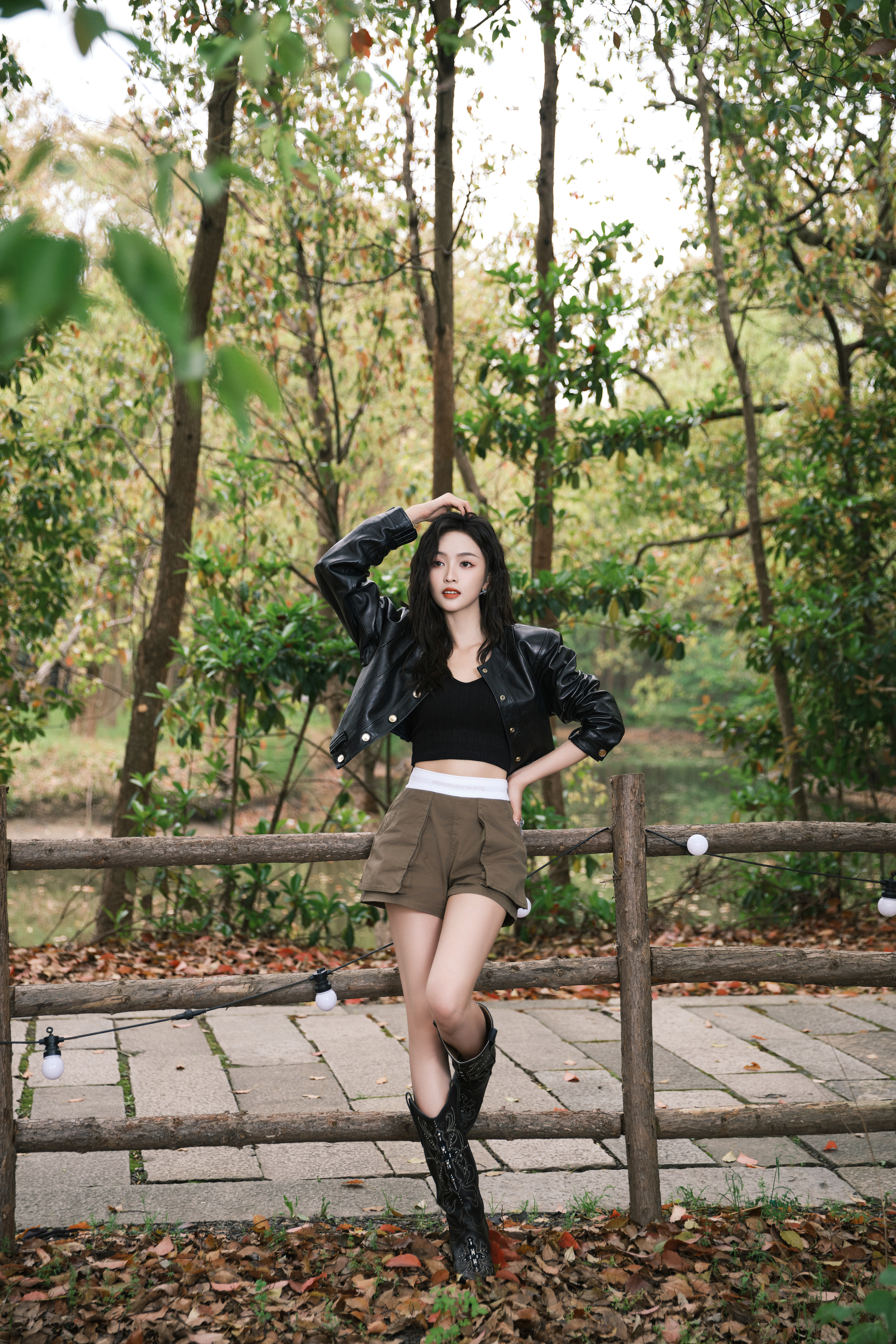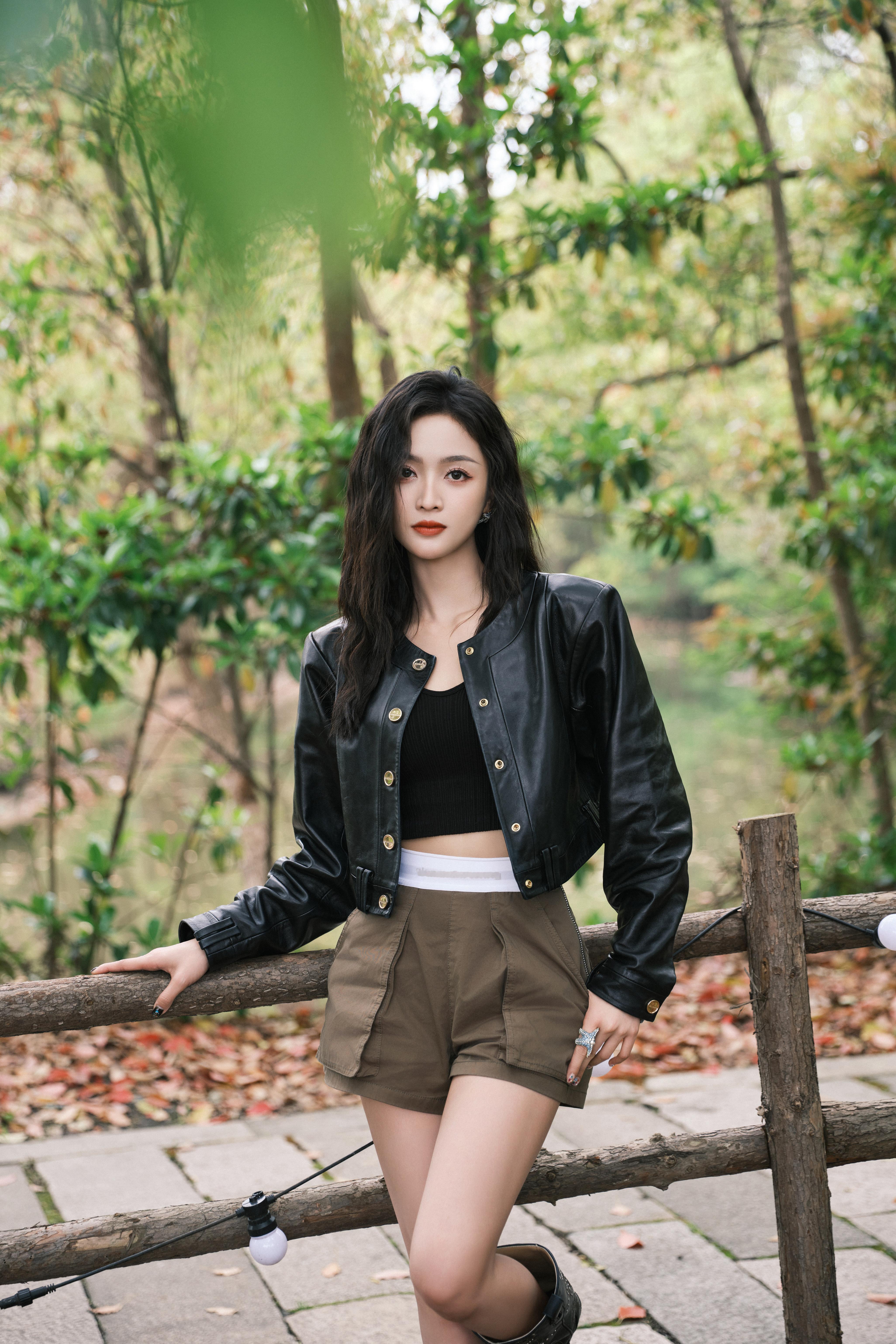吴艳妮在成都穿着短裤大腿看起来很粗壮,表情自信又张扬