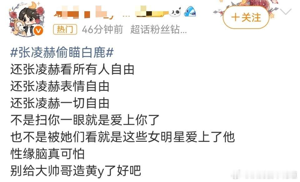 张凌赫偷瞄白鹿围观热搜,看到这两条,莫名觉得有点好笑,看把孩子逼得。“张凌赫,