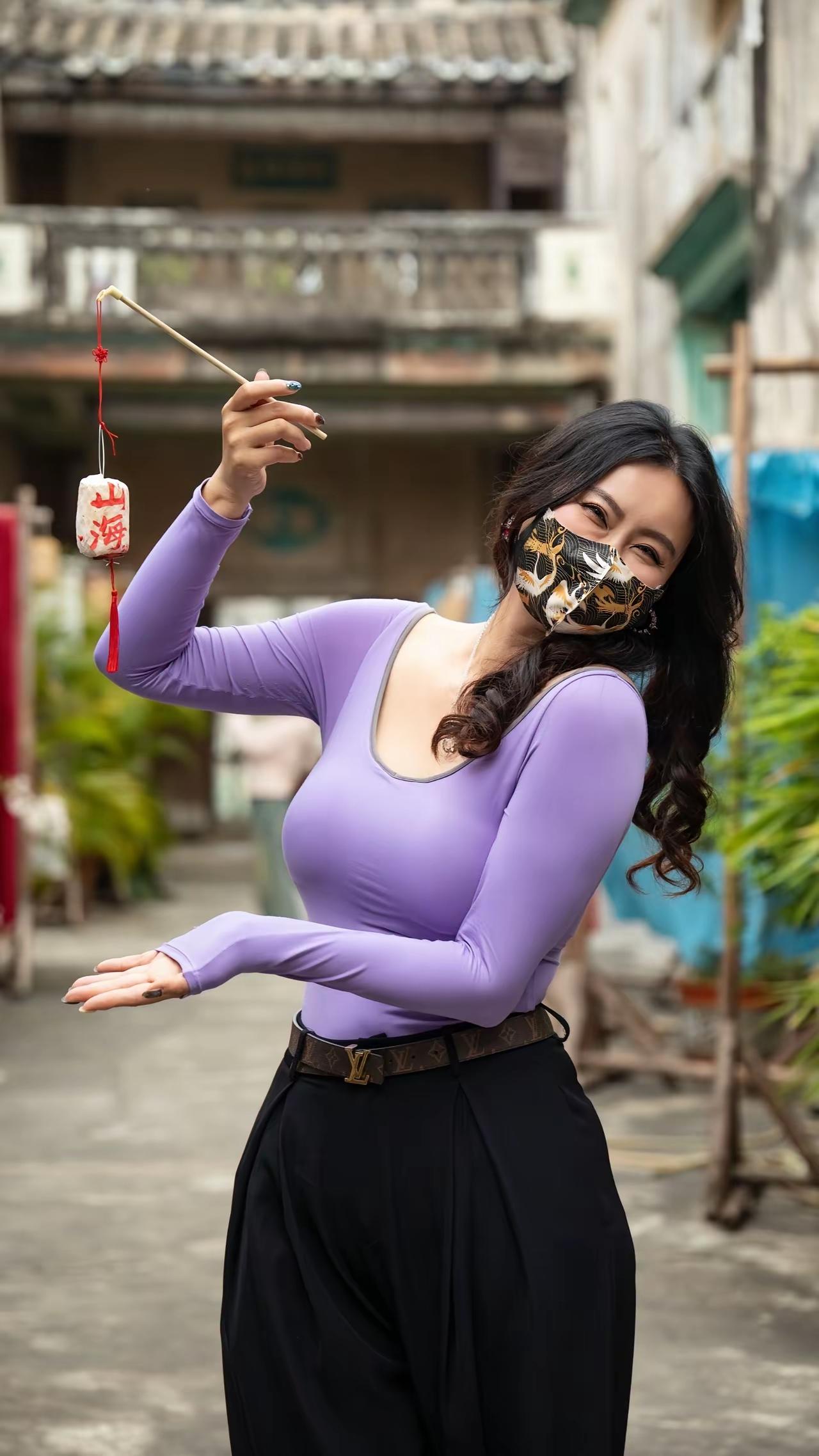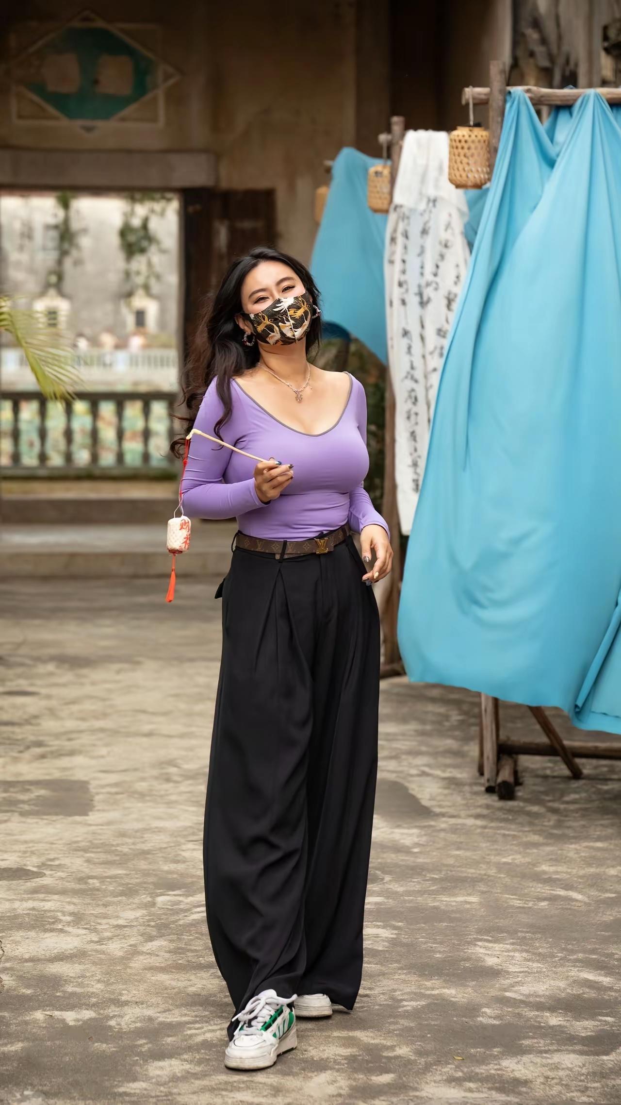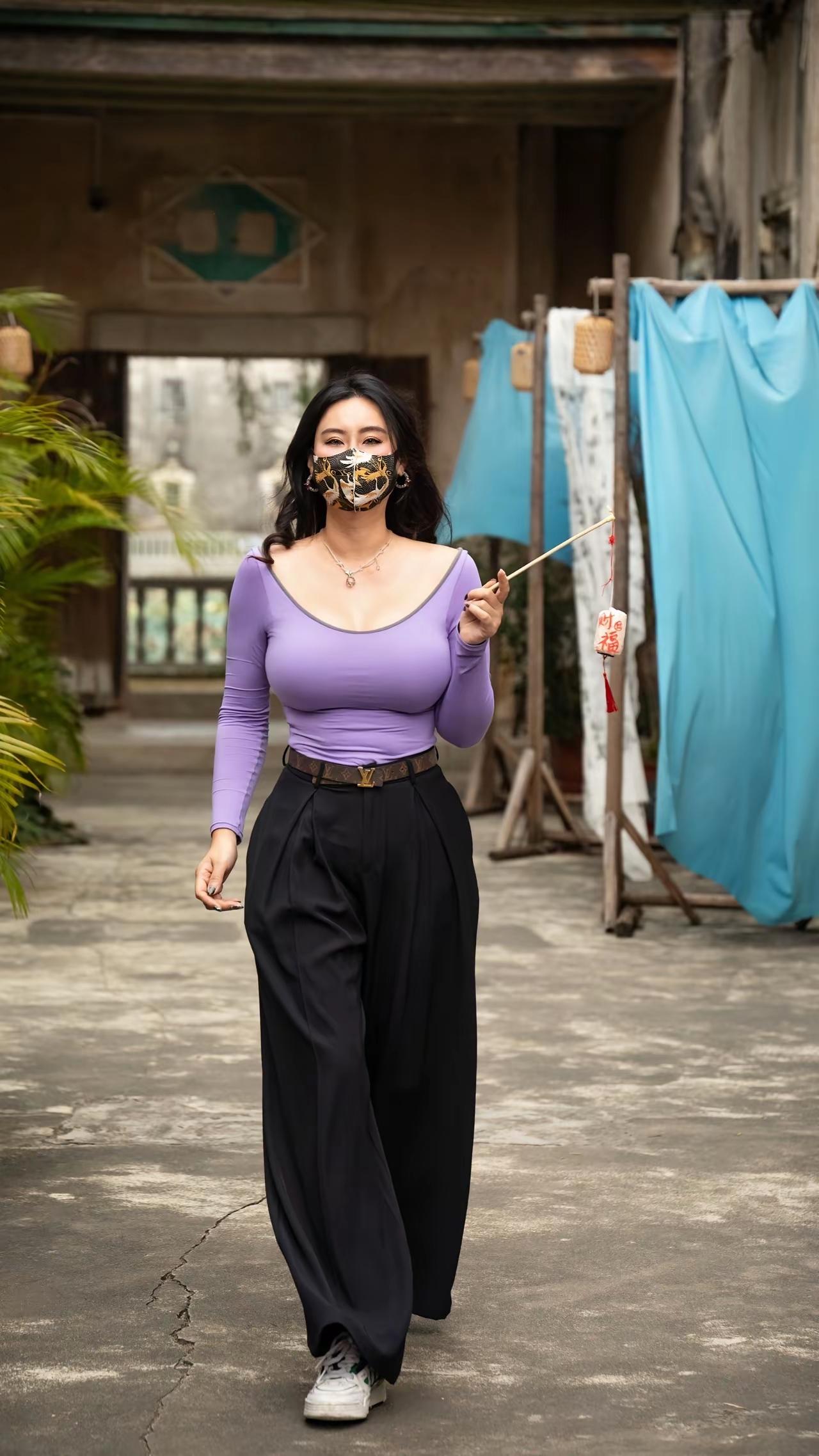 穿着豹纹衣服,摆着酷酷的姿势。女生怎么穿搭会看上去很优雅