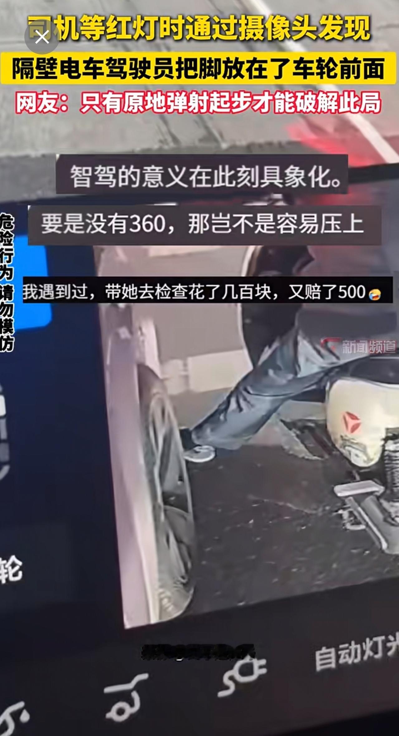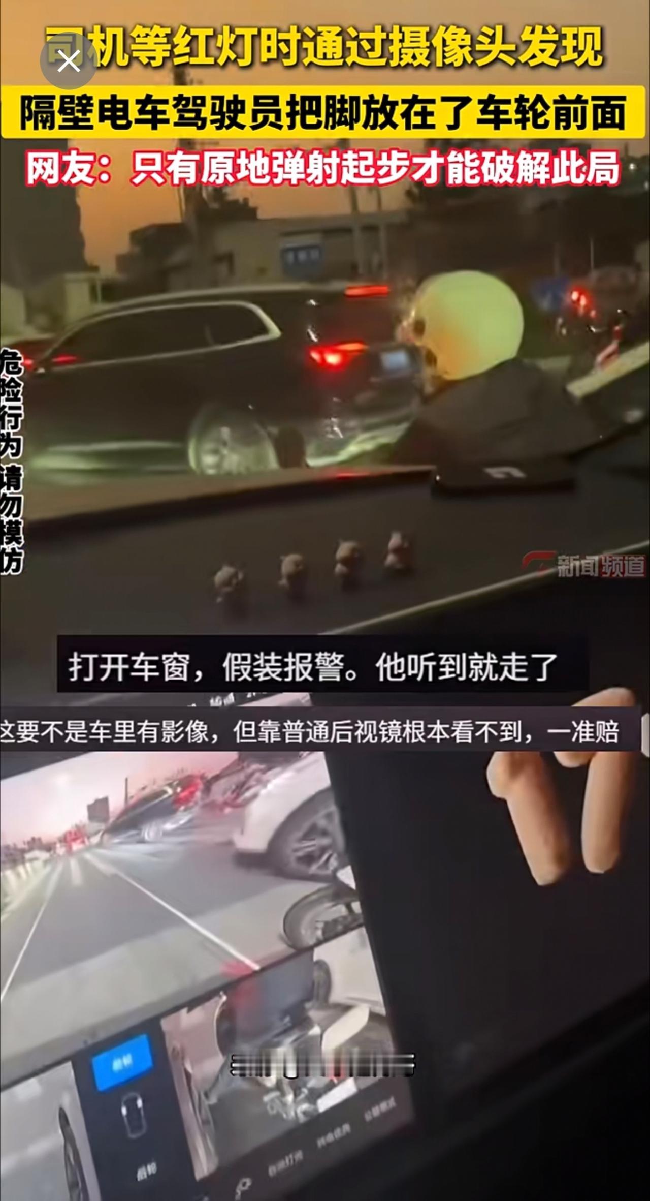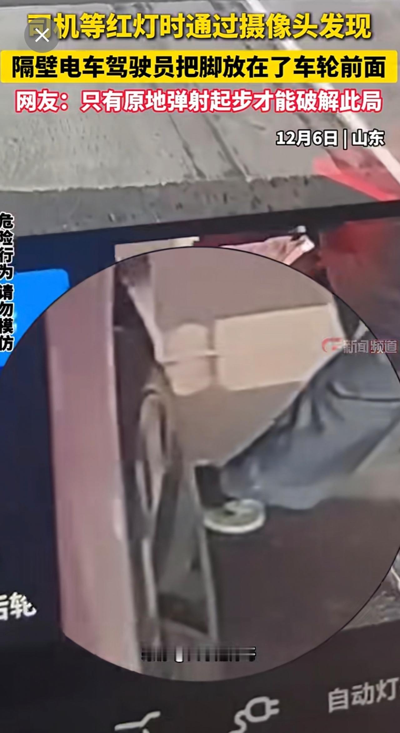 司机等红灯时通过摄像头发现一旁电车驾驶员把脚放在了车轮前,这局该如何解?