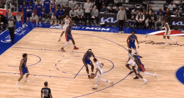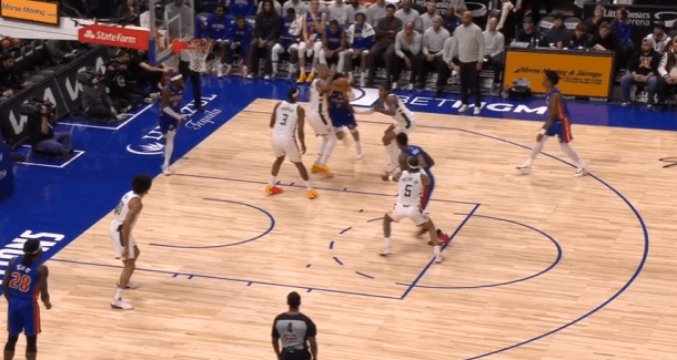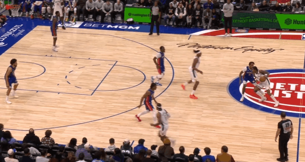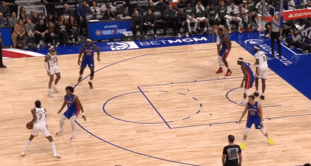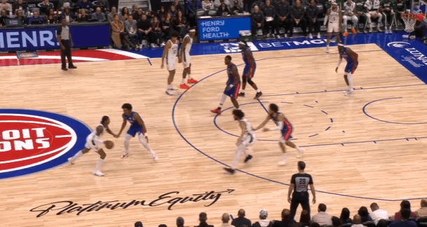 雄鹿观察:字母伤缺波特扛起球队大梁,对阵活塞32+6+4+4图1奥萨尔强侧面框单打特伦特吸引特纳上前协防,波特回收兼顾篮下杜伦的同时成功预判到奥萨尔传球线路,成功抄截传球。图2波蒂斯强侧低位单打里德,波特从弱侧空手移动至强侧接应造成活塞防守沟通失误,直接获得空位出手机会。图3,LOGO位置接球发动第二波进攻,借助杰克逊的掩护起手穿过坎宁安的延误,右路突破长驱直入,起跳滞空,空中对抗隔着杜伦上篮打进。图4、5先在坎宁安起身终结的瞬间精准将球切掉,随后再成功破坏斯图给奥萨尔的传球,发动快攻1打0扣篮得手。图6弱侧接应接球后佯装左路突破,随后立即背后运球换到右手过掉奥萨尔,面对前来协防的勒维尔使用欧洲步没能躲开,于是在对抗接触的瞬间、失去重心后立即出手后仰跳投,打成2+1。图7,LOGO位置借助科菲的掩护点名邓罗,邓罗给强延误,波特佯装抓奥萨尔归位的时间差出手持球三分,见奥萨尔的扑防过于偏左且左脚朝前,立即变向走右路突破直接过掉,直杀篮下吸引弱侧协防佯装起身终结点起杜伦后传给底角空位的特伦特。图8空手向弱侧底角移动接应罗林斯,接球后投篮虚晃点飞勒维尔后炸球横撤步三分命中。图9挡拆行进间等格林强延误归位后左路行进至三分线,胯下变到右手合球后持球三分顶人强投。图10接球后衔接和西姆斯的挡拆配合,邓罗采取“提前挤过”,波特见中路门户大开直接左路长驱直入。行进间将邓罗卡在身后,吸引弱侧勒维尔回收协防佯装传给底角罗林斯,通过传球假动作将勒维尔调回底角后,在利用第二层假动作佯装起身投篮终结吸引杜伦上提。骗过活塞弱侧底角协防人和镇守篮下的中锋后,再为篮下埋伏的西姆斯送上内传内,打穿活塞篮下。雄鹿vs活塞活塞战胜雄鹿