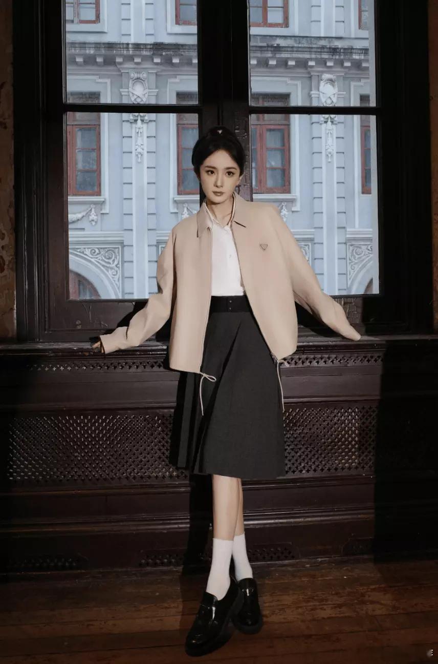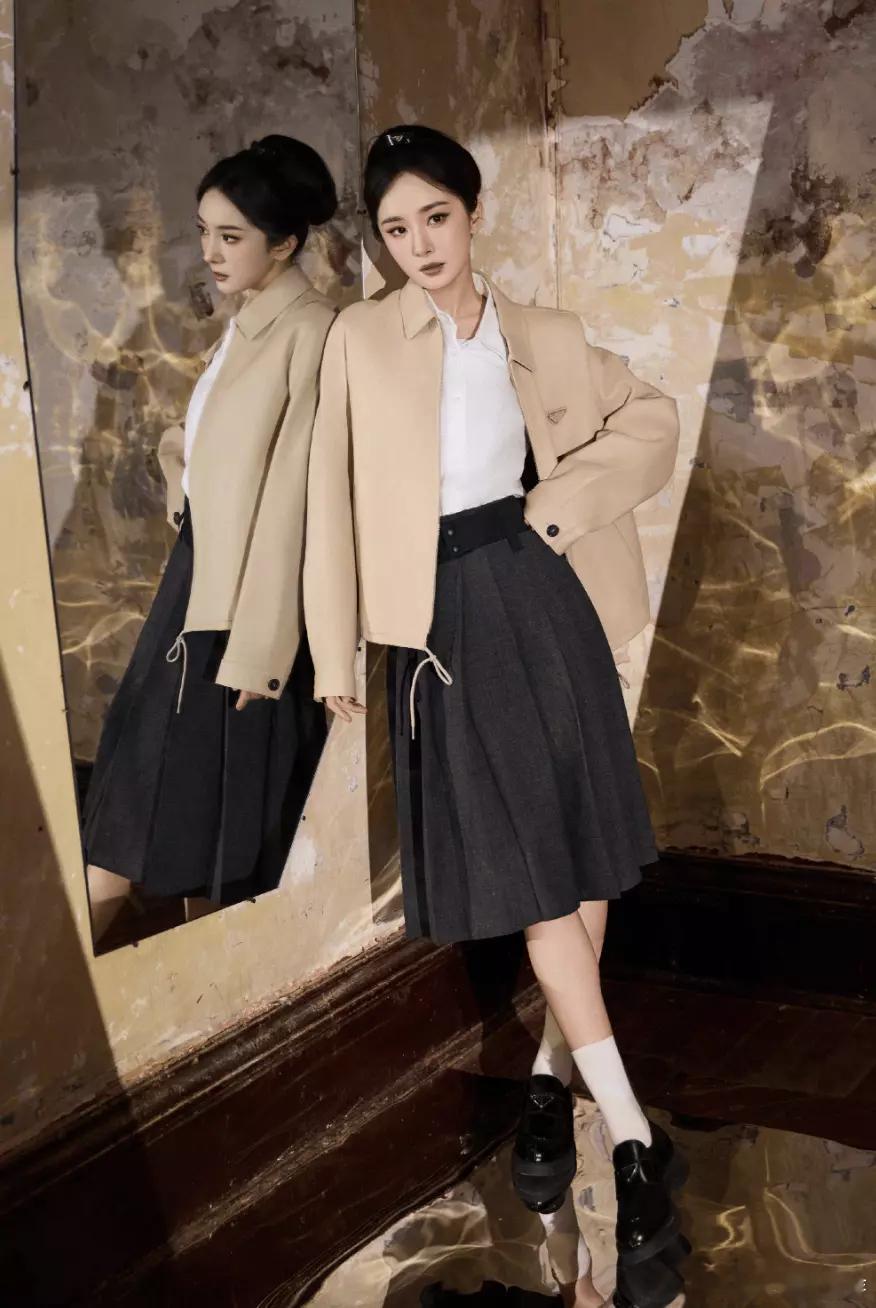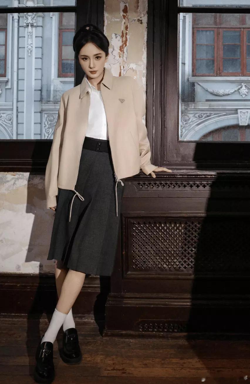 分享娱乐分享娱乐 杨幂卡其色夹克配半裙 复古空间里弥漫文艺质感