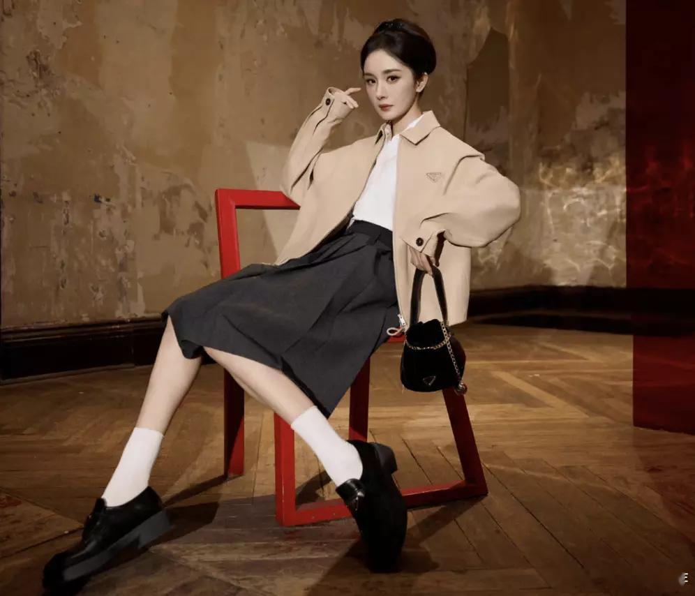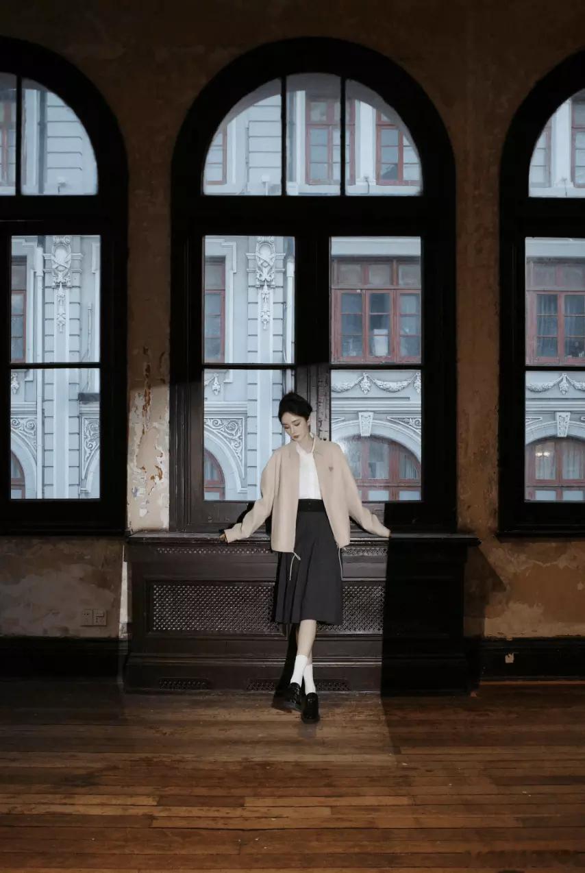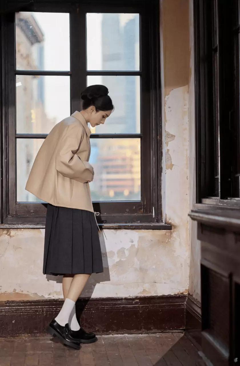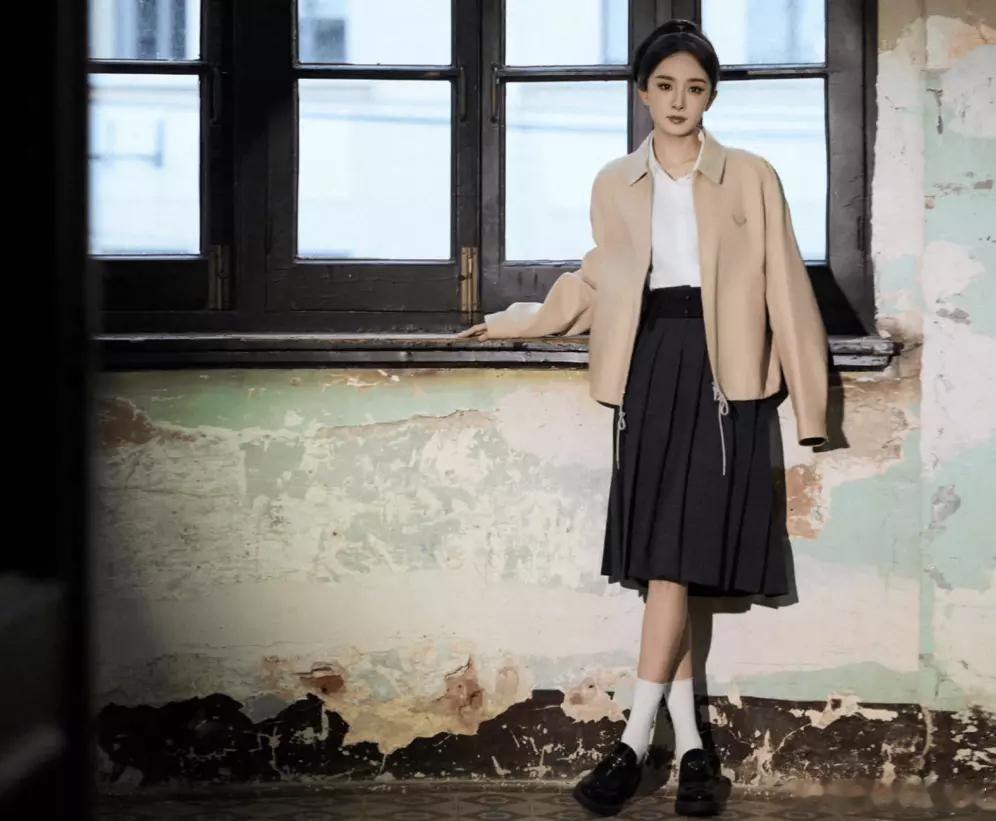 分享娱乐分享娱乐 杨幂卡其色夹克配半裙 复古空间里弥漫文艺质感