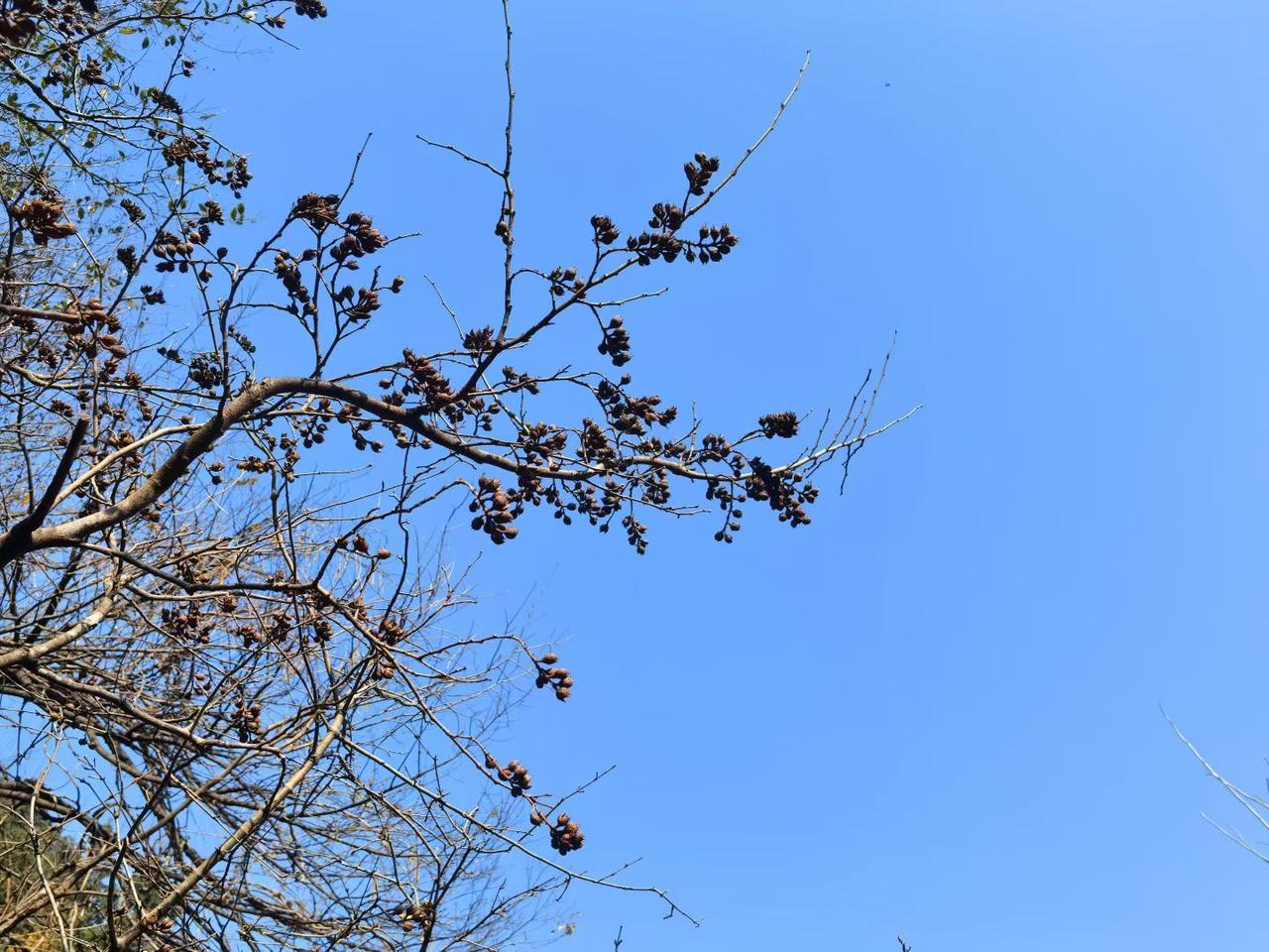 秋意渐浓,树枝上挂满了成熟的果实,蓝天映衬下格外美丽。
