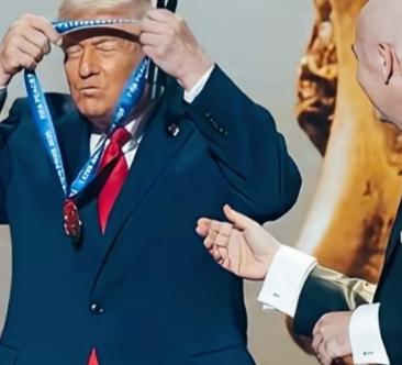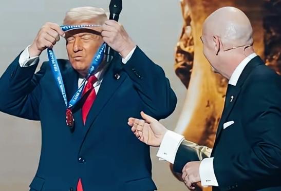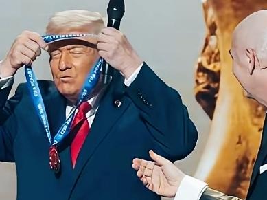 特朗普自己戴奖牌的样子是不是挺有意思啊? 这表情是什么意思呢? 这是高兴的表情,还是着急的表情呢?