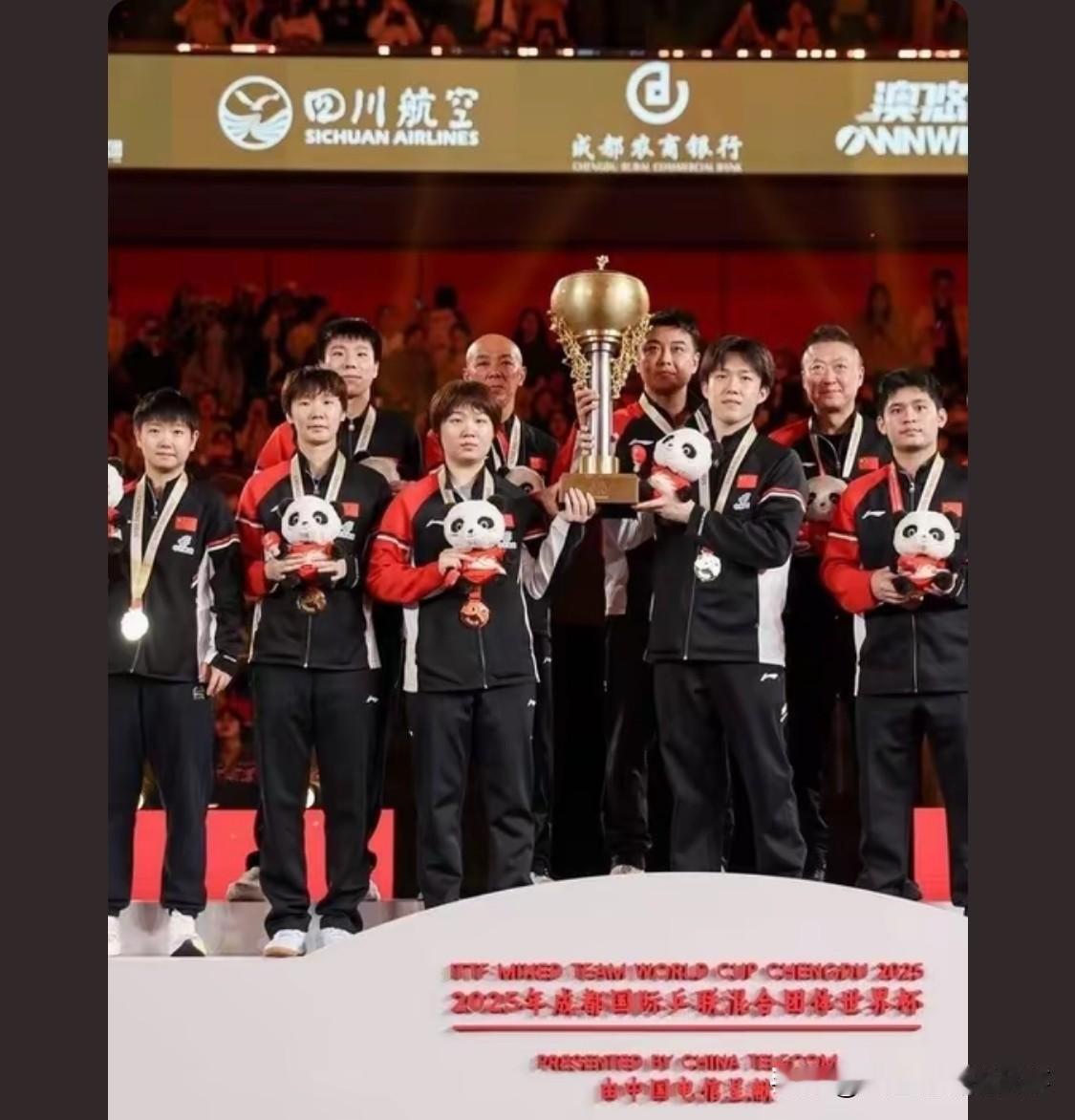 2025成都混团世界杯,国乒用8:1告诉世界:乒乓球的天花板,还是中国队! 还是布置完混双,女单,男单,女双,男双,女单,男单。一共21局,取得11胜,是不是锻炼的球员更多。我认为还是打的太少了。