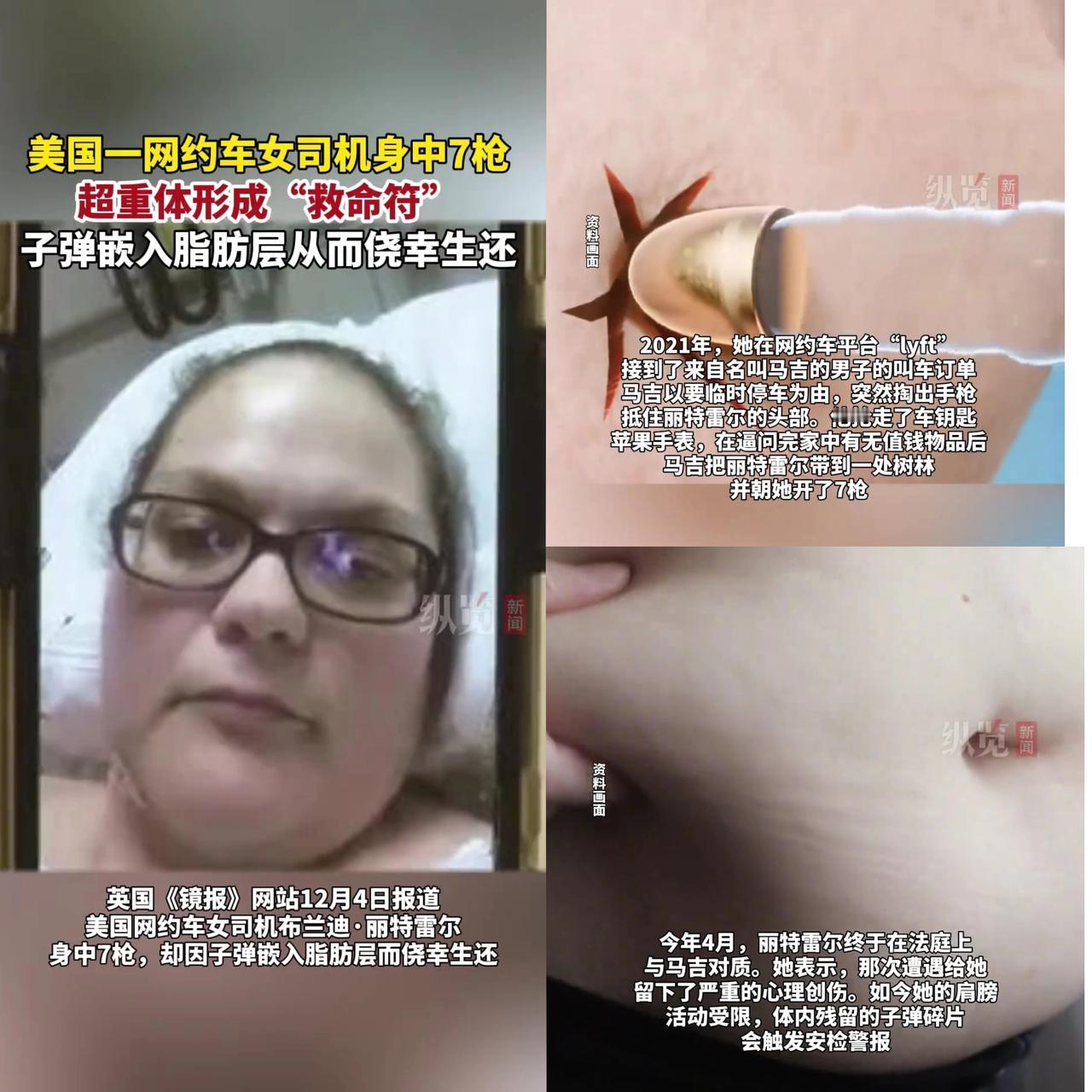 这个真是意想不到的好处! 美国网约车女司机身中7枪活 下来,全靠厚实 脂肪层挡子弹、改弹道! 脂肪竟成“保命铠甲”? 这不是“胖有益”,而是极端风险下的侥幸。 网约车行业本就藏着暴力风险,这次事件更该敲醒警钟——平台不能只赚佣金,司机的安全防护得跟上。 你觉得网约车该加哪些硬防护,才能让司机不用靠“侥幸”保命?来聊两句~