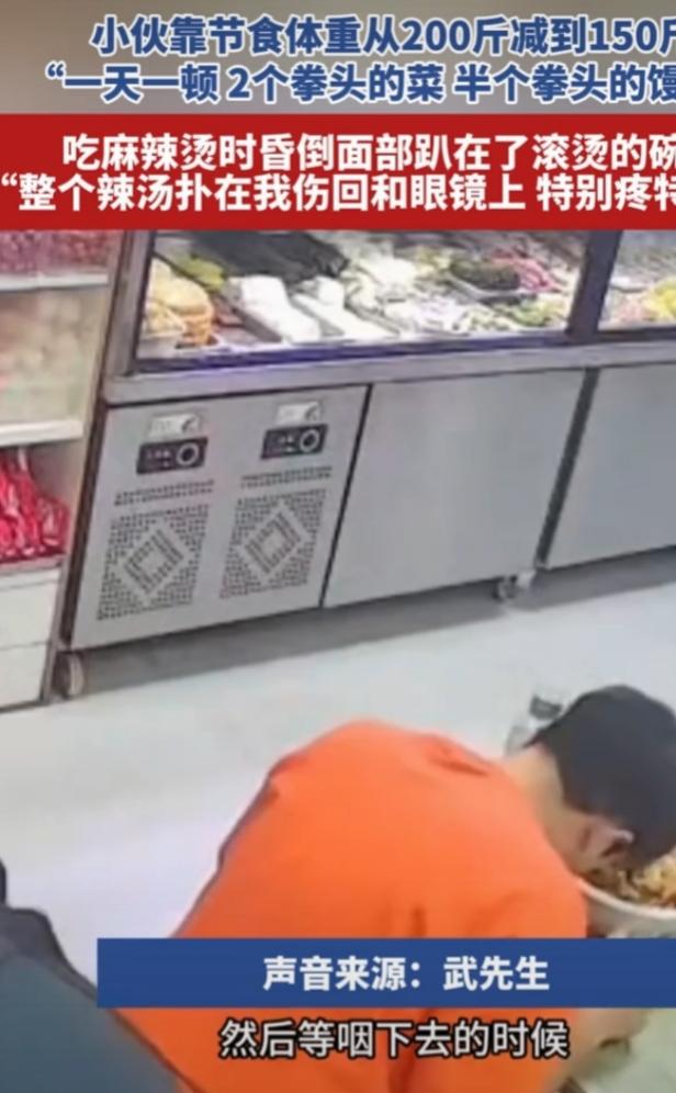 最近看到两则小伙节食减肥出事的新闻,真是让人捏把汗。河南那小伙为快速甩肉,三餐变一餐,瘦了50斤后直接晕倒路边,是低血糖、电解质紊乱。还有内蒙古包头的武先生,节食9个月瘦50斤,吃麻辣烫时竟昏倒,脸扑进滚烫碗里,皮肤都浅二度烫伤了。 很多人减肥心切,却忘了健康才是第一位。节食减肥就像让肠胃“空烧”,胃炎、胃溃疡等疾病容易找上门,还会浑身没劲儿、掉头发、抵抗力下降。减肥得讲究科学,极端节食真要不得!