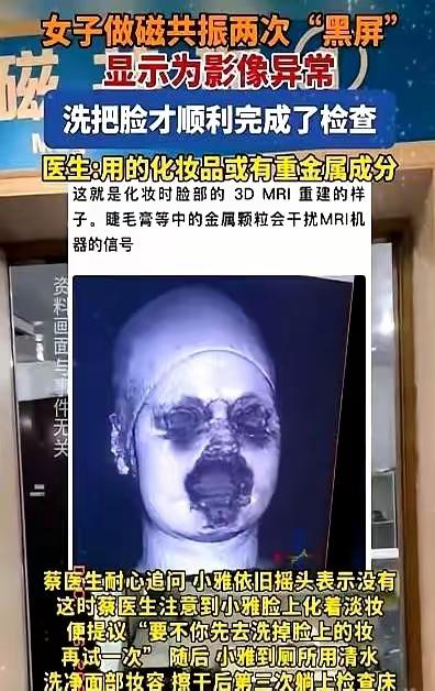 福建姑娘这事儿,真给所有爱化妆的姐妹敲了警钟! 头晕去做核磁共振,结果仪器扫出来面部全是黑影,医生都怀疑她脸上镶了钢板,最后才发现罪魁祸首是一层淡妆! 那些号称“持妆12小时”“提亮增白”的大牌粉底、遮瑕,为了效果都加了氧化铁、氧化钛这些金属氧化物。在3.0T的强磁场下,直接干扰成像,差点耽误病情。 更吓人的是,香港消委会检测30款面膜,28款含重金属,韩货、希腊货都难逃,铅、砷超标是常事。我们以为的“精致体面”,其实是敷在脸上的“隐形风险”。 所谓的科技护肤、高端彩妆,不少都是用重金属换一时效果。爱美的前提是健康,这层“都市保护色”可别变成伤害自己的“金属面具”。你平时化妆会特意避开含金属成分的产品吗?评论区聊聊!