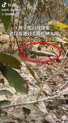 五六十斤大蟒蛇!广西防城港,男子爬山找蜜蜂,无意中在一个老坟旁发现一条大蟒蛇在晒太阳,这条蟒蛇大概估算有个五六十斤。男子表示自己不敢靠近,拍完照就走了,当时心里也是慌慌的。 五六十斤的大蟒蛇还是比较少见的,好在男子只是在远处看到,并没有被蟒蛇发现,拍完照后立马就离开了。 可能男子也是非常的好奇想上前查看,但是理智告诉他不能靠近,因为蟒蛇太大非常的危险。 独自上山还是要注意安全才行,如果遇到大蟒蛇还是要及时选择离开,以免被蟒蛇攻击。