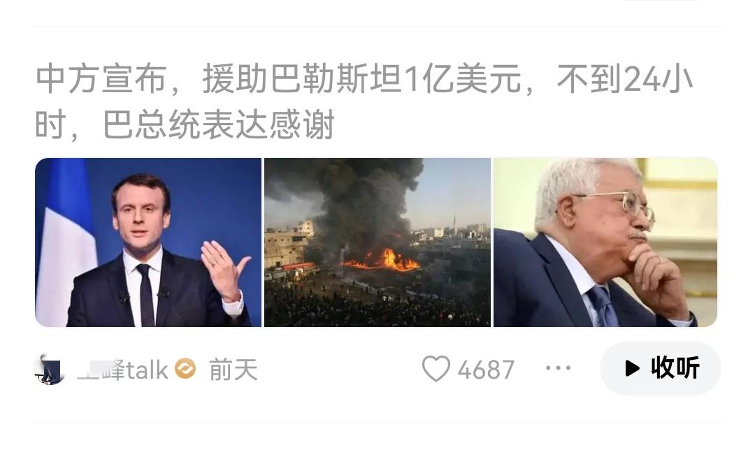 中东巴勒斯坦地区有了和平的曙光。中国秉着人道主义精神援助了1亿美元的资金,用于战后重建,也是为巴勒斯坦建国出一份力。 反观美西方这些国家拿出了什么?送给了以色列源源不断的武器,尤其是美国,屁股都歪到脑袋上了。 喊打的也是美国人的打手,叫停也是美国人出来喊停。左右手互搏倒来倒去就是为了美国人自己的利益,倒霉的却是巴勒斯坦人。 这世道……