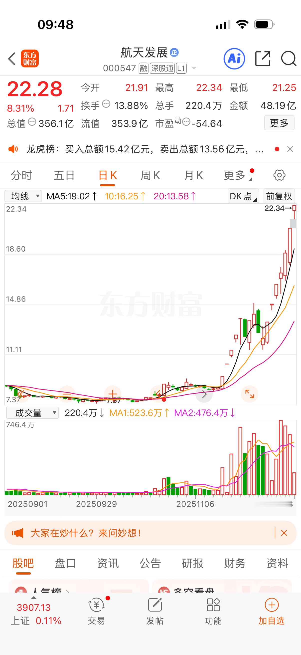 我前面说的航天发展今天是新高了1号公布出来到目前40%盈利不会少我也不做