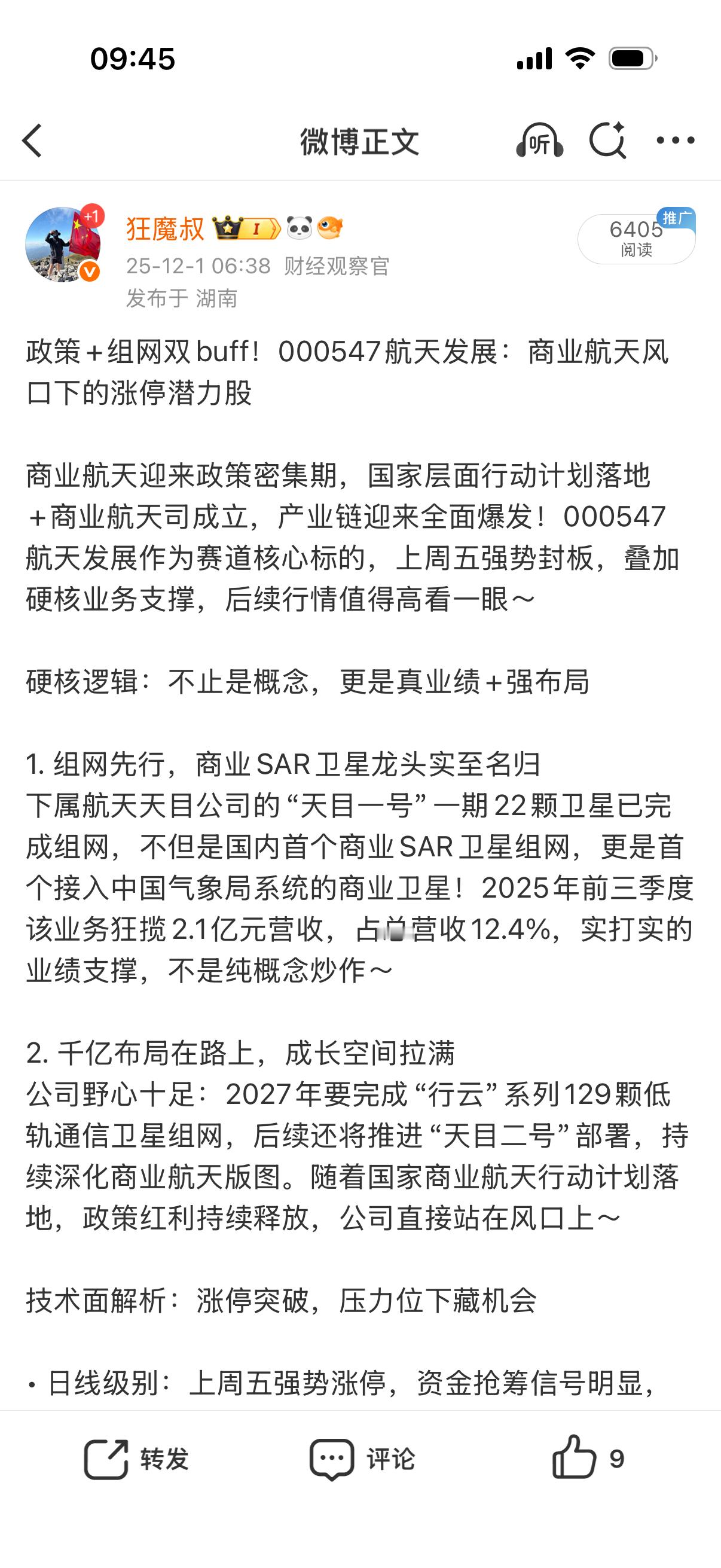 我前面说的航天发展 今天是新高了 1号公布出来 到目前40%盈利不会少 我也不做马后炮